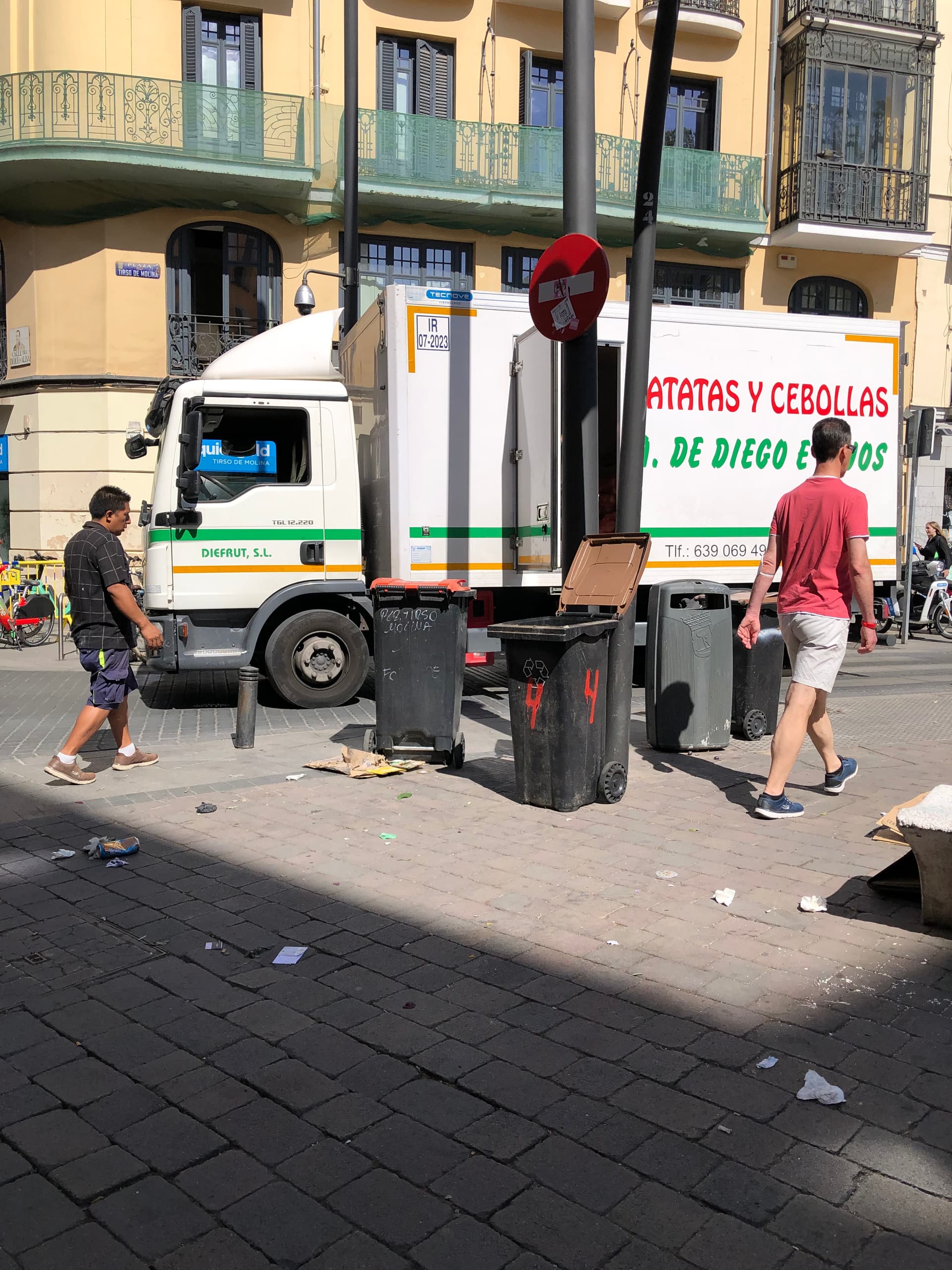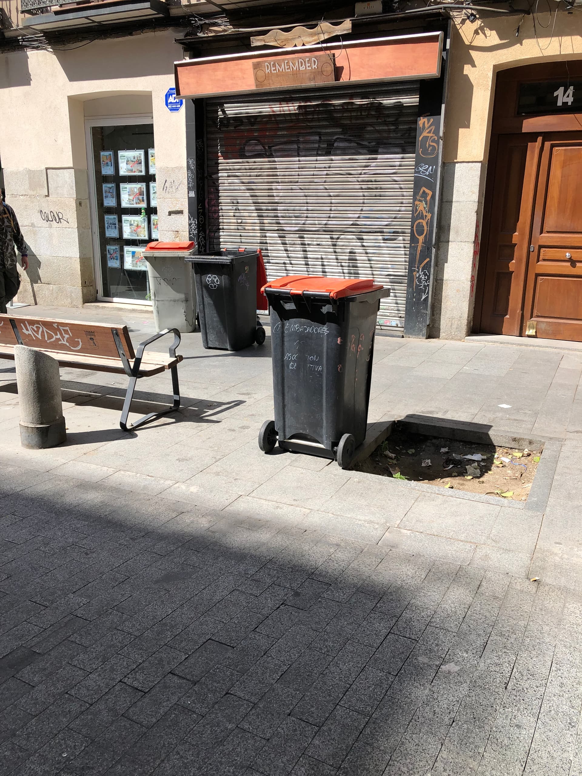 Gente dejando bolsas de basura en los alcorques a cualquier hora del día, los comercios no respetando los horarios para sacar los cartones, contenedores que se quedan eternamente en la acera porque nadie los vuelve a meter en el edificio, gente tirando absolutamente todo al suelo, así todos los días y vuelta a empezar.
