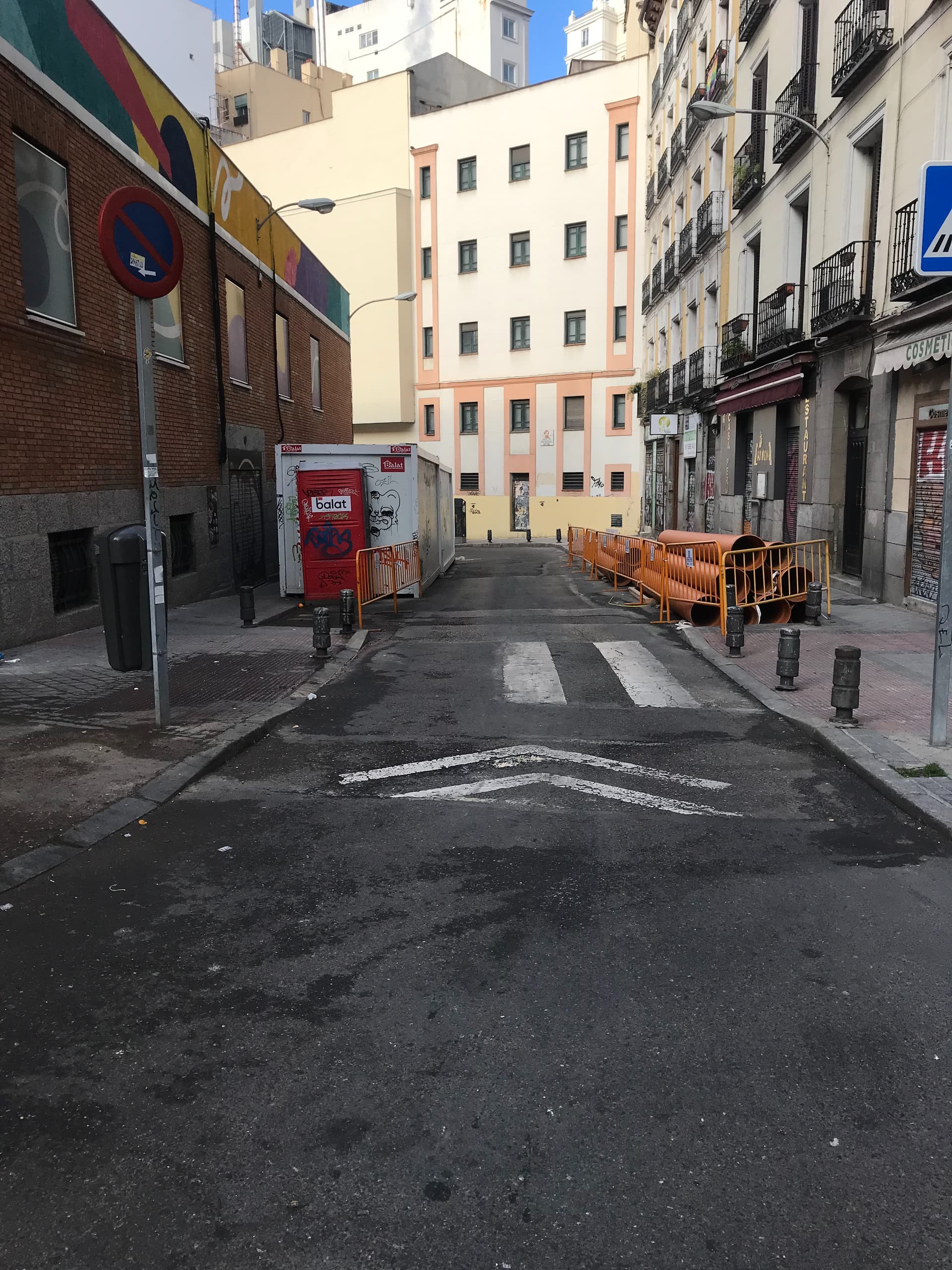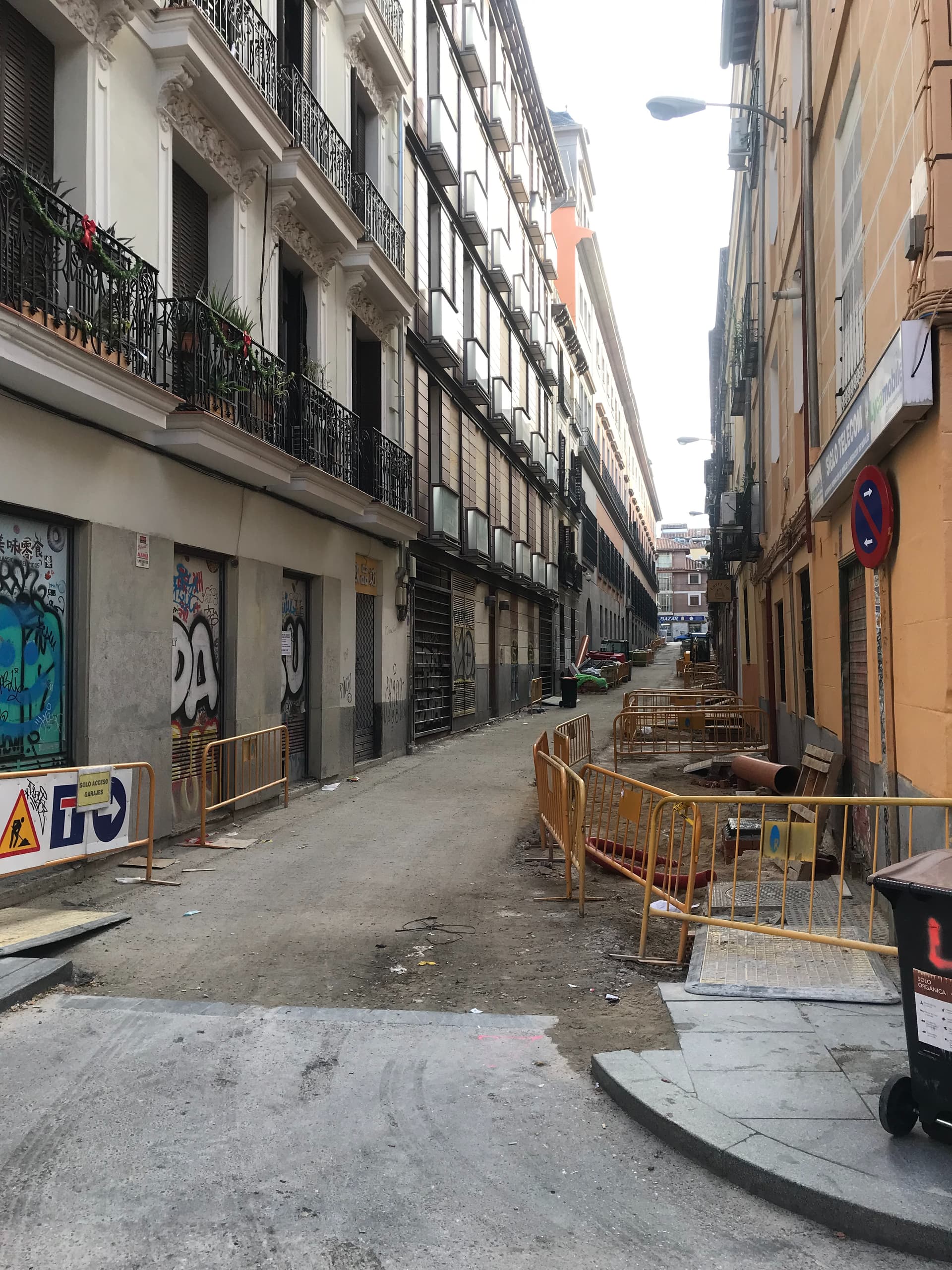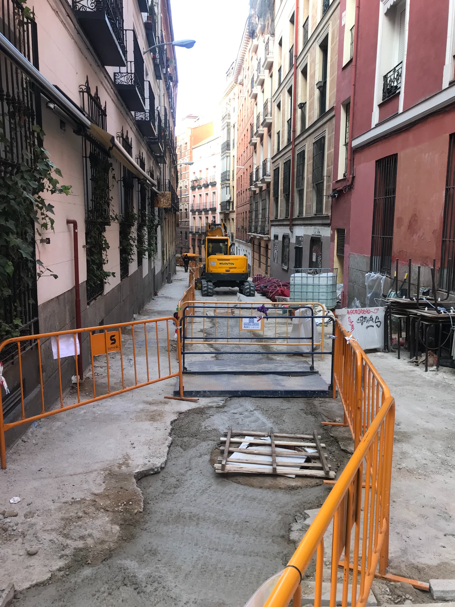 El entorno de la plaza de los Mostenses lleva tiempo en obras. La calle Antonio Grilo, que habían levantado por partes, la han vuelto a tapar supongo que de forma provisional