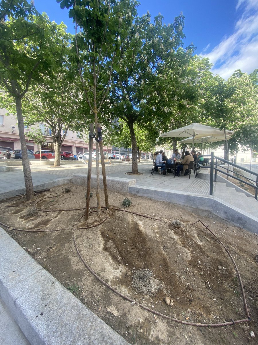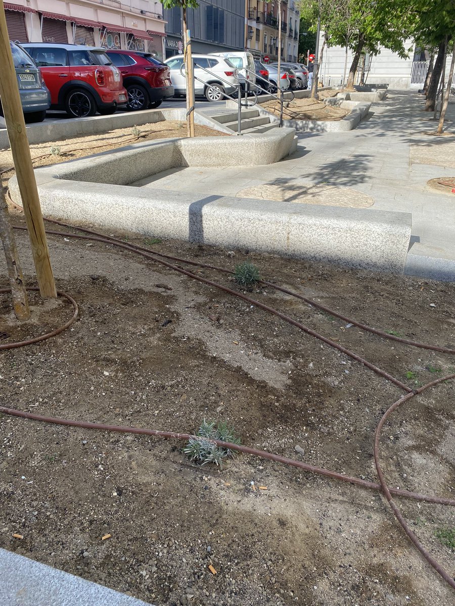Otra plaza remodelada en la que los maléficos vecinos han debido vandalizar sus parterres como en Lavapiés. Eso o que el Ayuntamiento simplemente no hace su trabajo y remodela para la galería pero sin dedicar ni un mínimo esfuerzo a su mantenimiento y ajardinamiento.