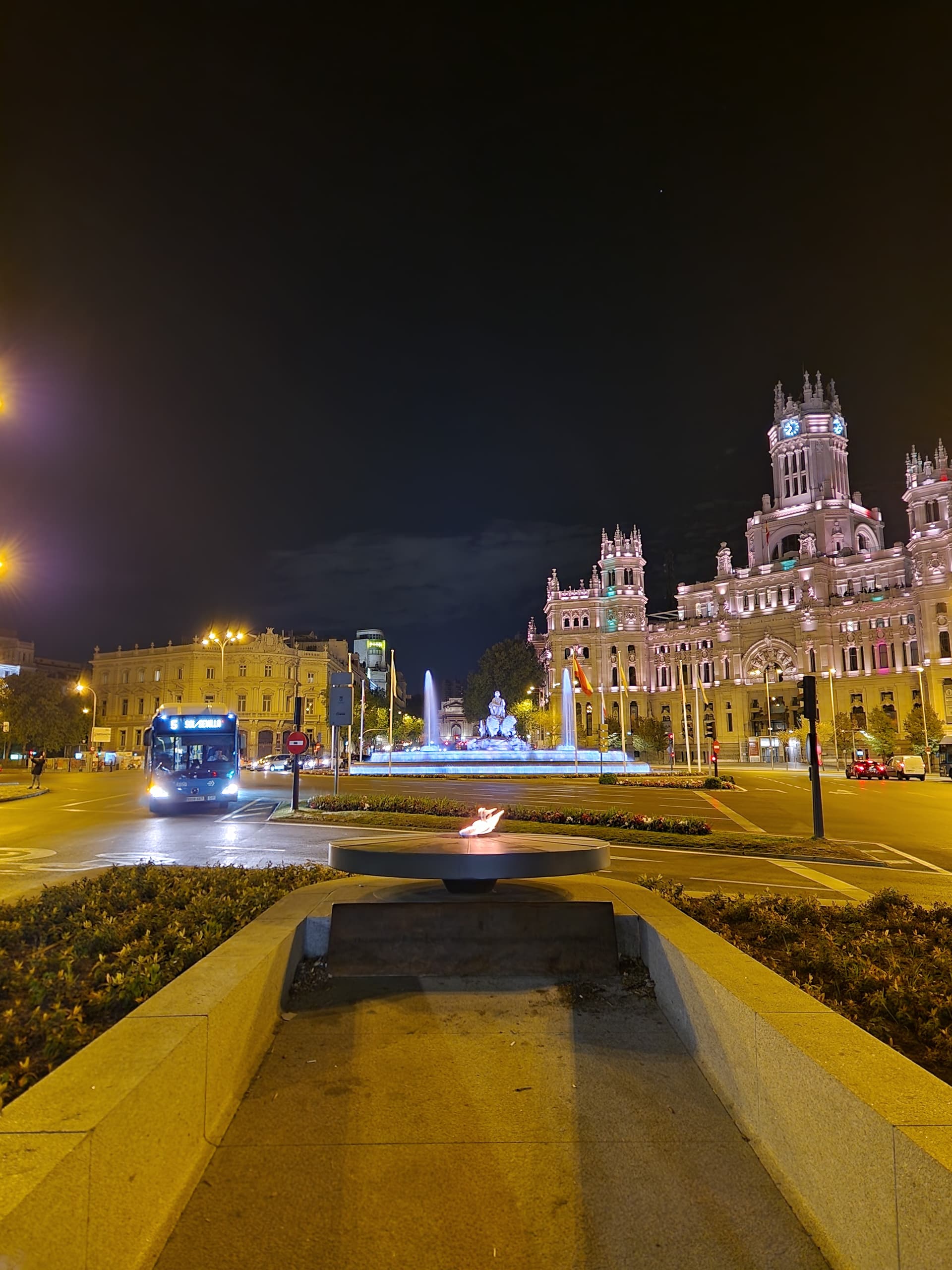 Acabo de pasar y el pebetero funciona perfectamente. La iluminación del Palacio de Cibeles ya es otro tema…