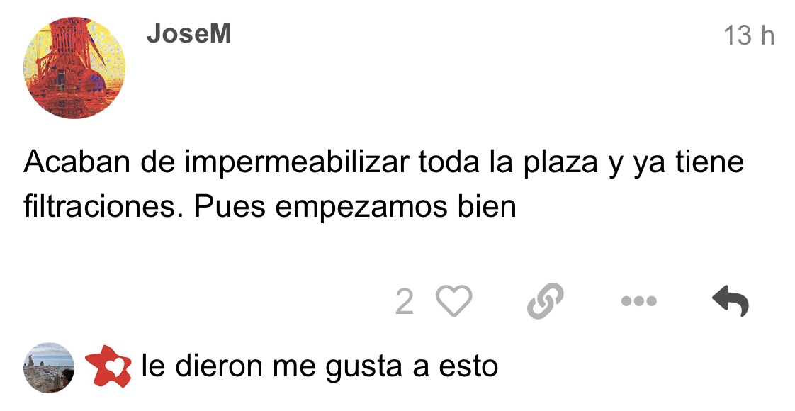 Acaban de impermeabilizar toda la plaza y ya tiene filtraciones. Pues empezamos bien