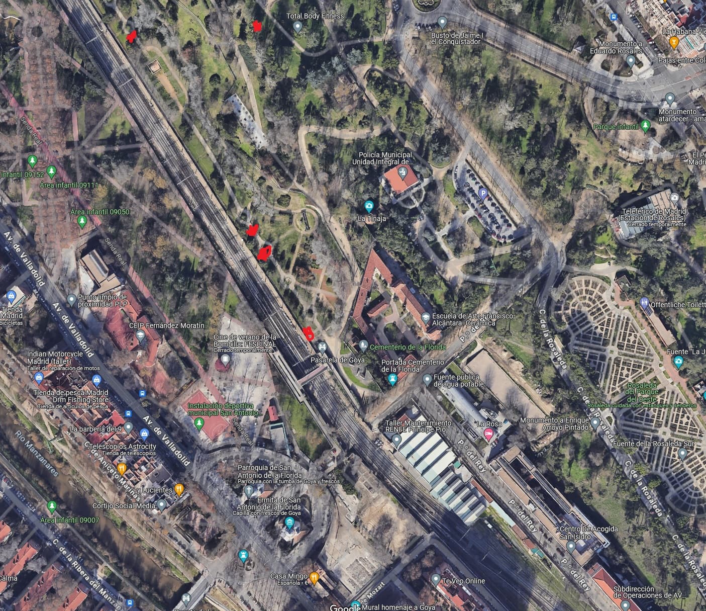 Y de regalo mi opinión sobre la zona, yo opino que habría que deprimir el Paseo del Rey para crear un paso peatonal franco y amplio bajo las vías.