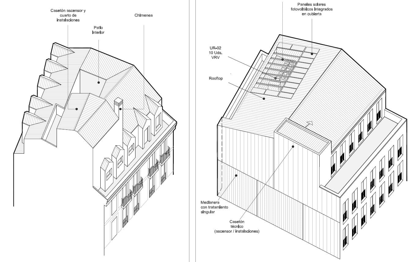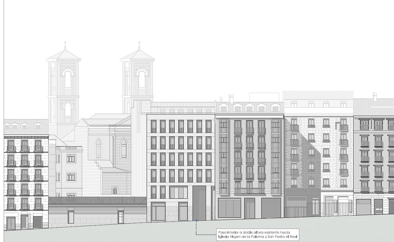 Disminuirá el fondo de la edificación actual en la planta baja y aumentará entre las plantas primera a sexta y, al mismo tiempo, se respeta y potencia el paso de dos alturas desde la calle de Toledo, que permite ver claramente la Iglesia de la Virgen de la Paloma