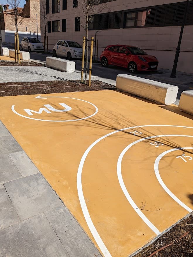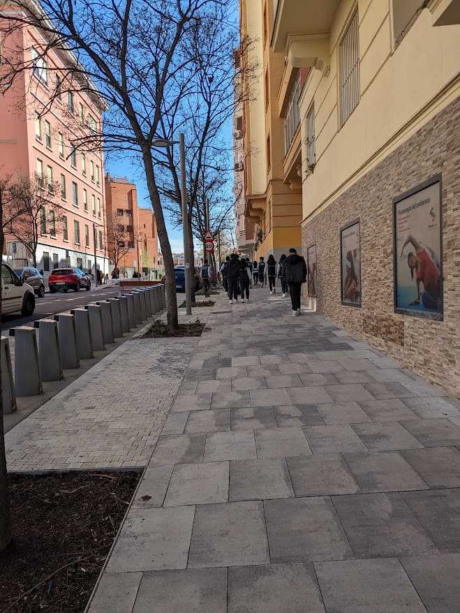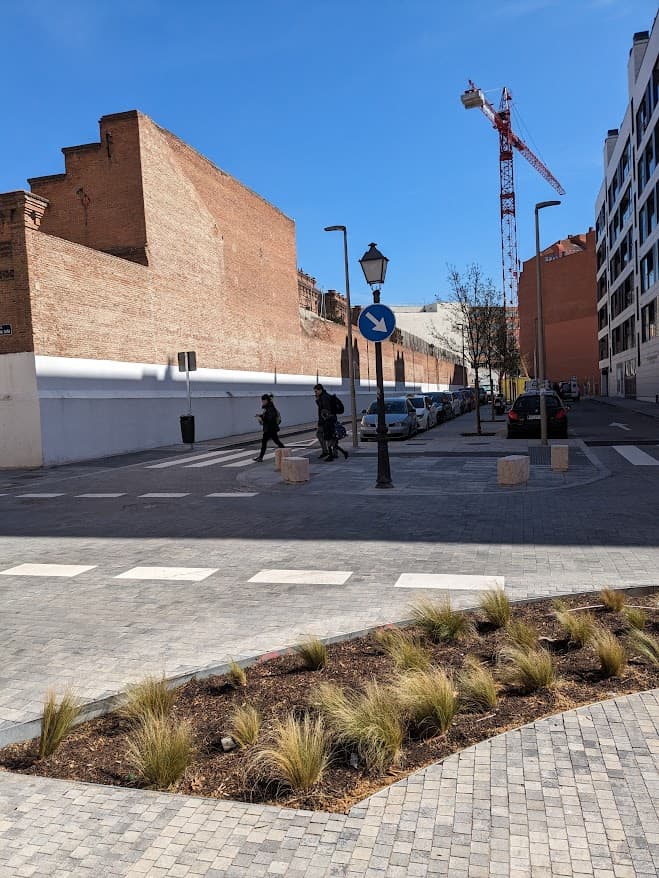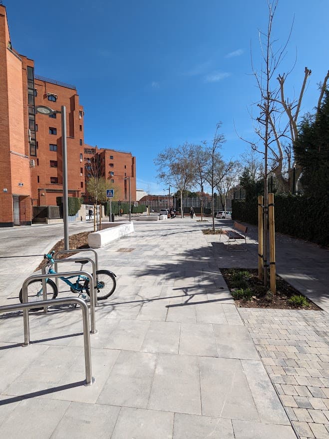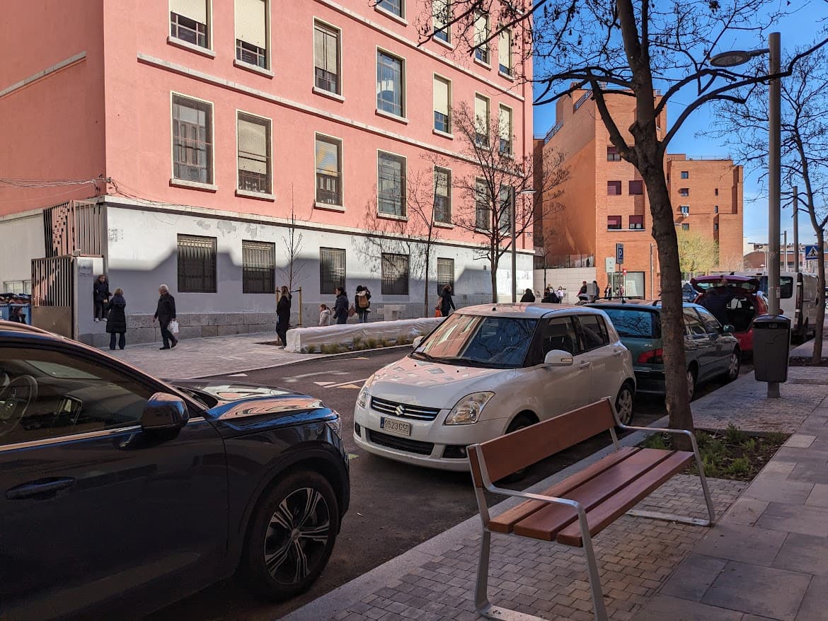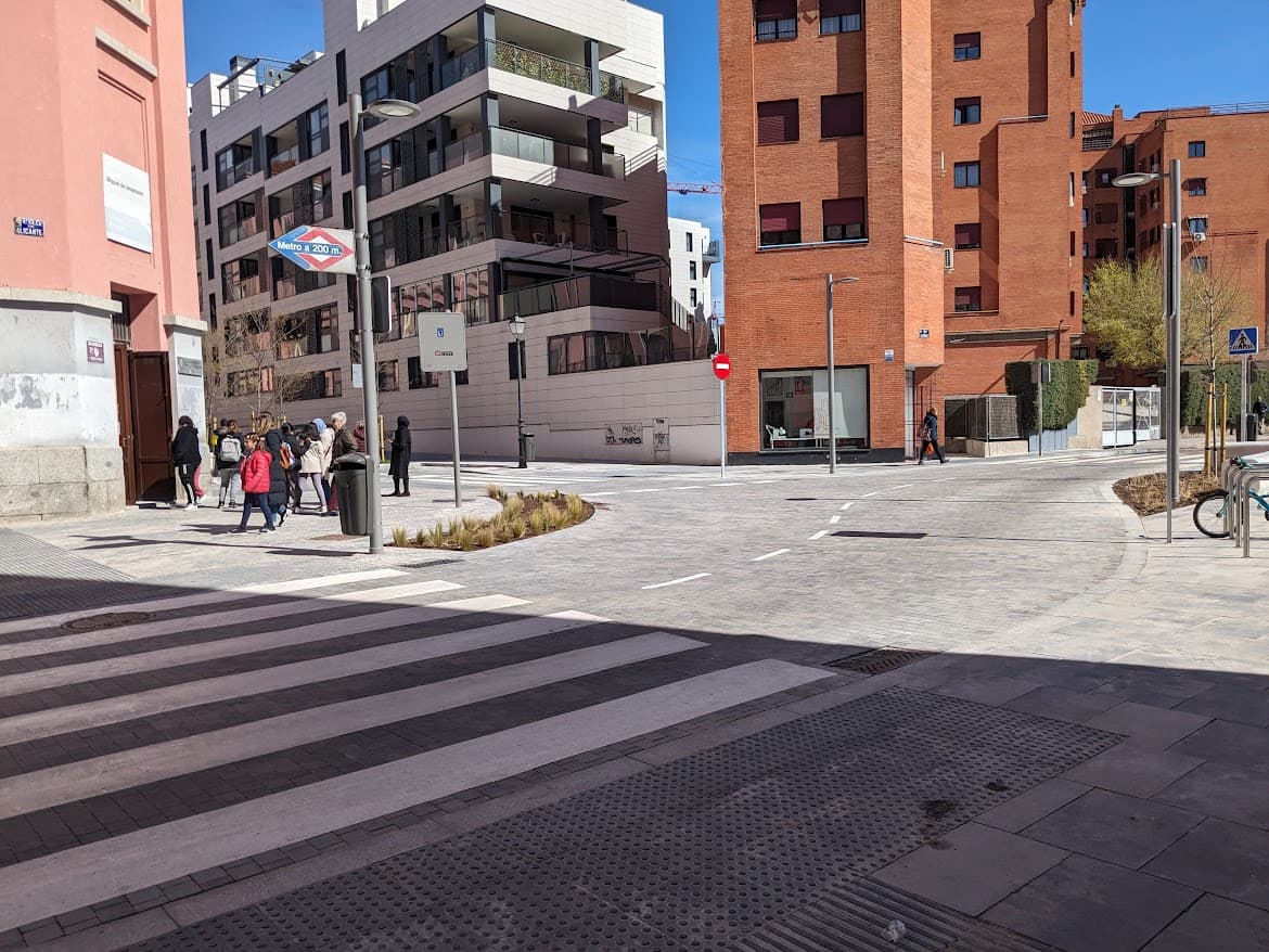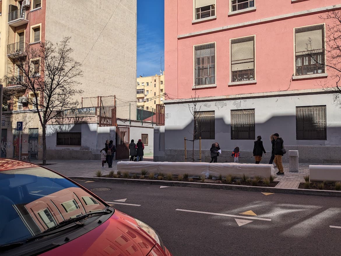 Justo pasé ayer por otro de los entornos escolares que están siendo intervenidos. El del Colegio Miguel de Unamuno en Arganzuela.