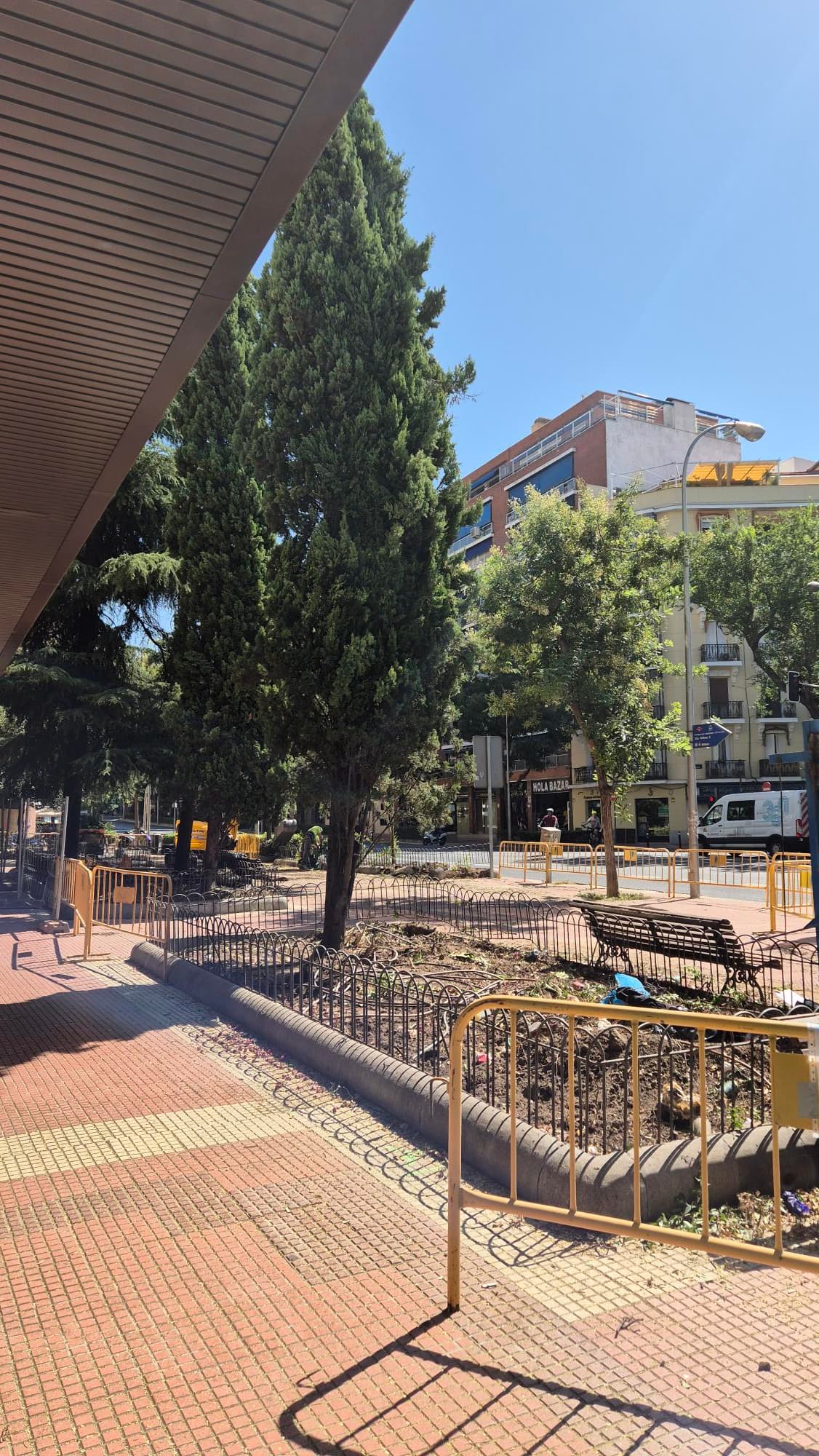 Se han cargado los setos. Si conservan los árboles (sinceramente no creo que se atrevan a cargárselos) y lo hacen todo igual que en Olavide, será una mejora palpable respecto a lo que hay.