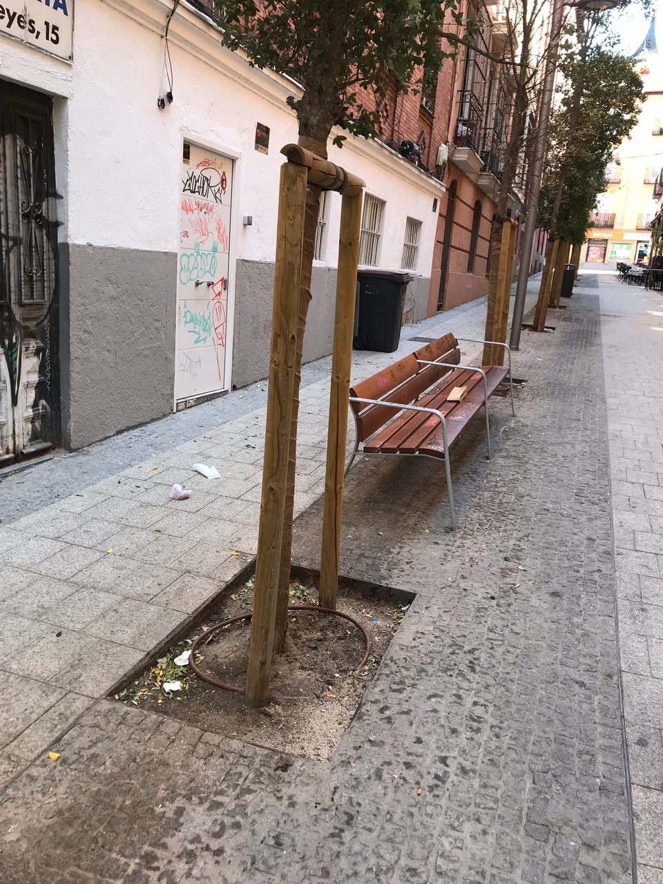 Al final quitaron todos los listones y la estructura metálica de todos los bancos de esa calle. No quedan bancos.