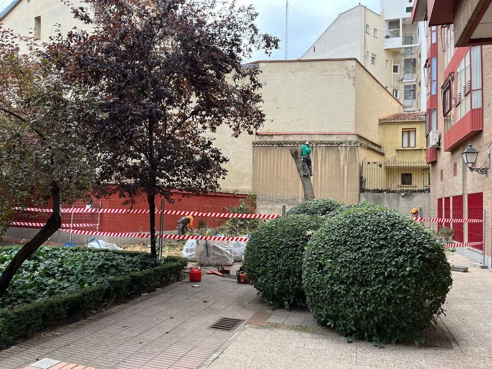 Demuestra pues que la actuación ha sido en esta zona que queda al fondo, que además de lo que explica esa nota informativa colgada en esa área delimitada, y aparte de las razones que han llevado a talar esos 5 árboles, queda claro que dista mucho de pretender arrasar con el jardín.