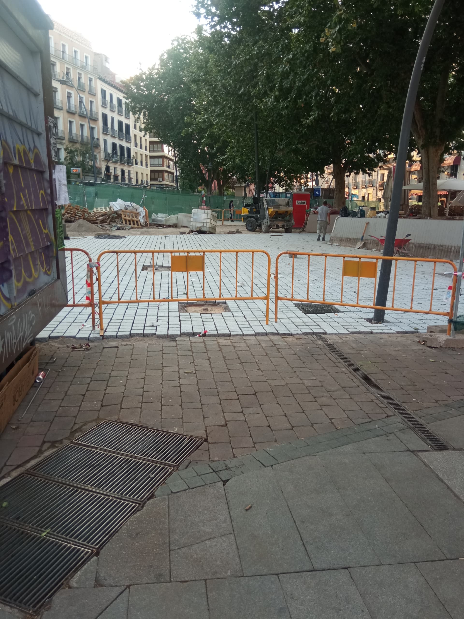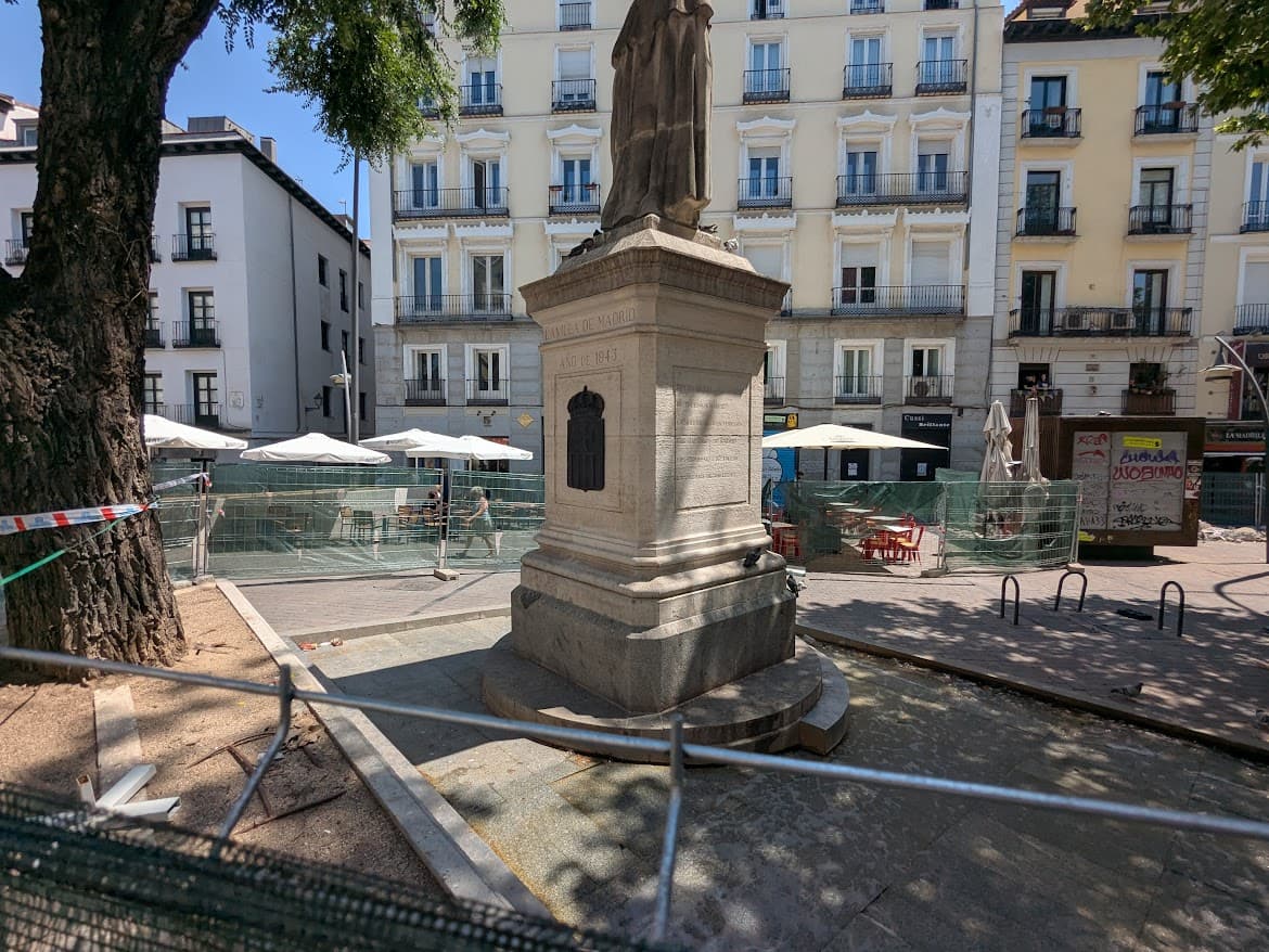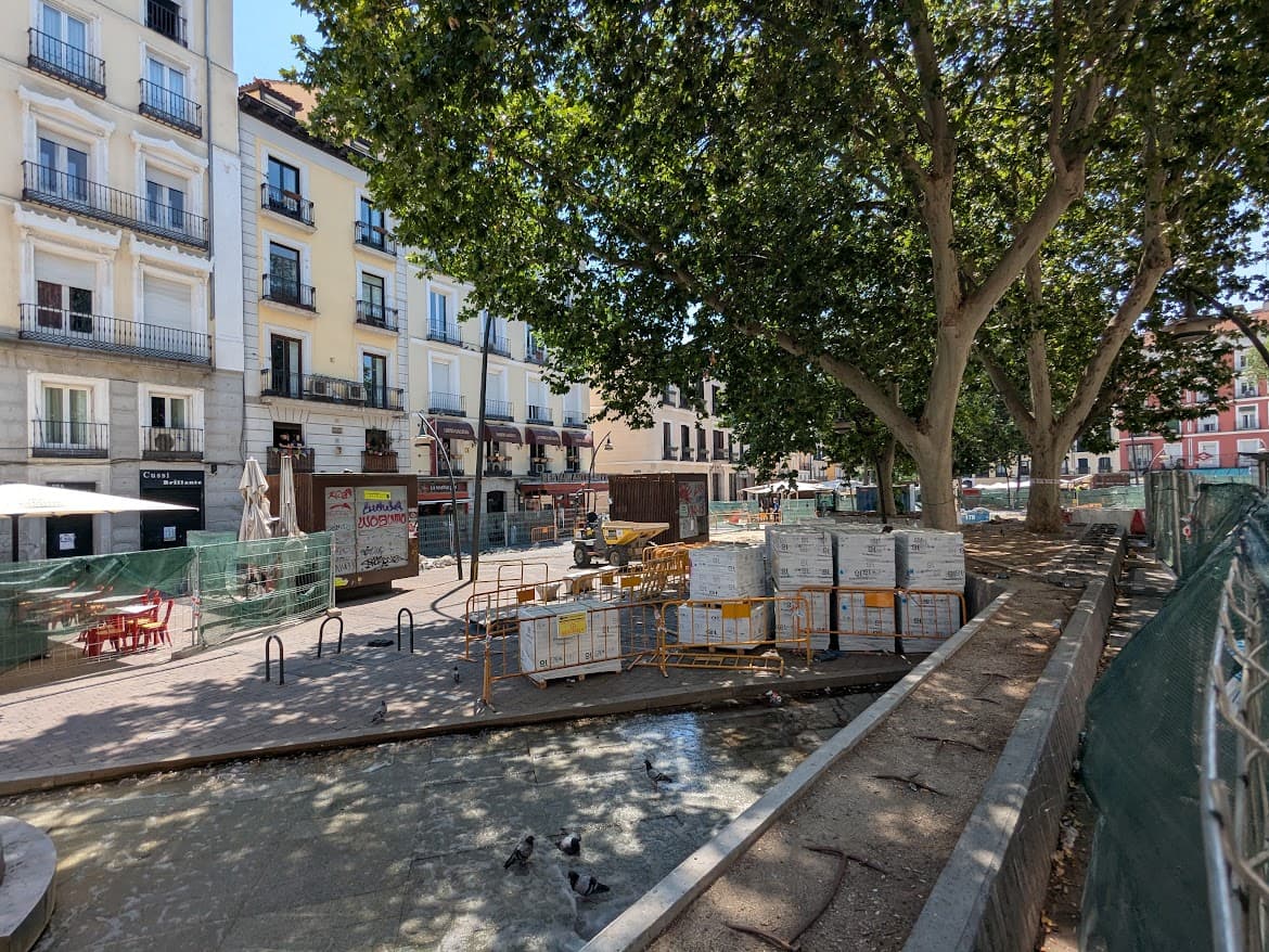 Y Tirso de Molina ya con vallas y con, curiosamente, fuente funcionando para regocijo palomil: