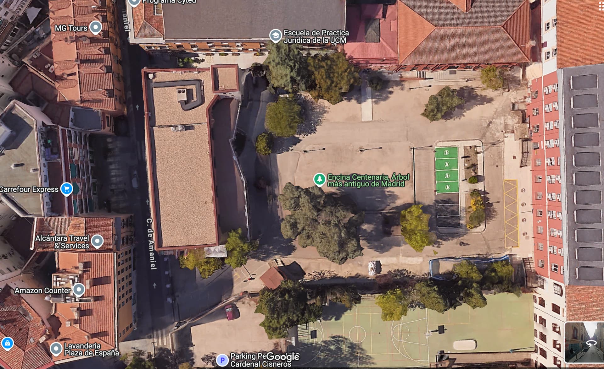 También la parte posterior de la Antigua Universidad, que creo pertenece al Ministerio de Cultura y que tiene entrada por la calle Amaniel, actualmente se utiliza como parking para los trabajadores y funcionarios de los edificios públicos colindantes. En el plan vigente se contemplaba derribar tres edificios, sin valor patrimonial y hacer un parque. La actuación propuesta en el Plan de Ordenación Urbana decayó al no haber cumplido los plazos establecidos, pero el espíritu de la ordenación me parece que está más vigente que nunca