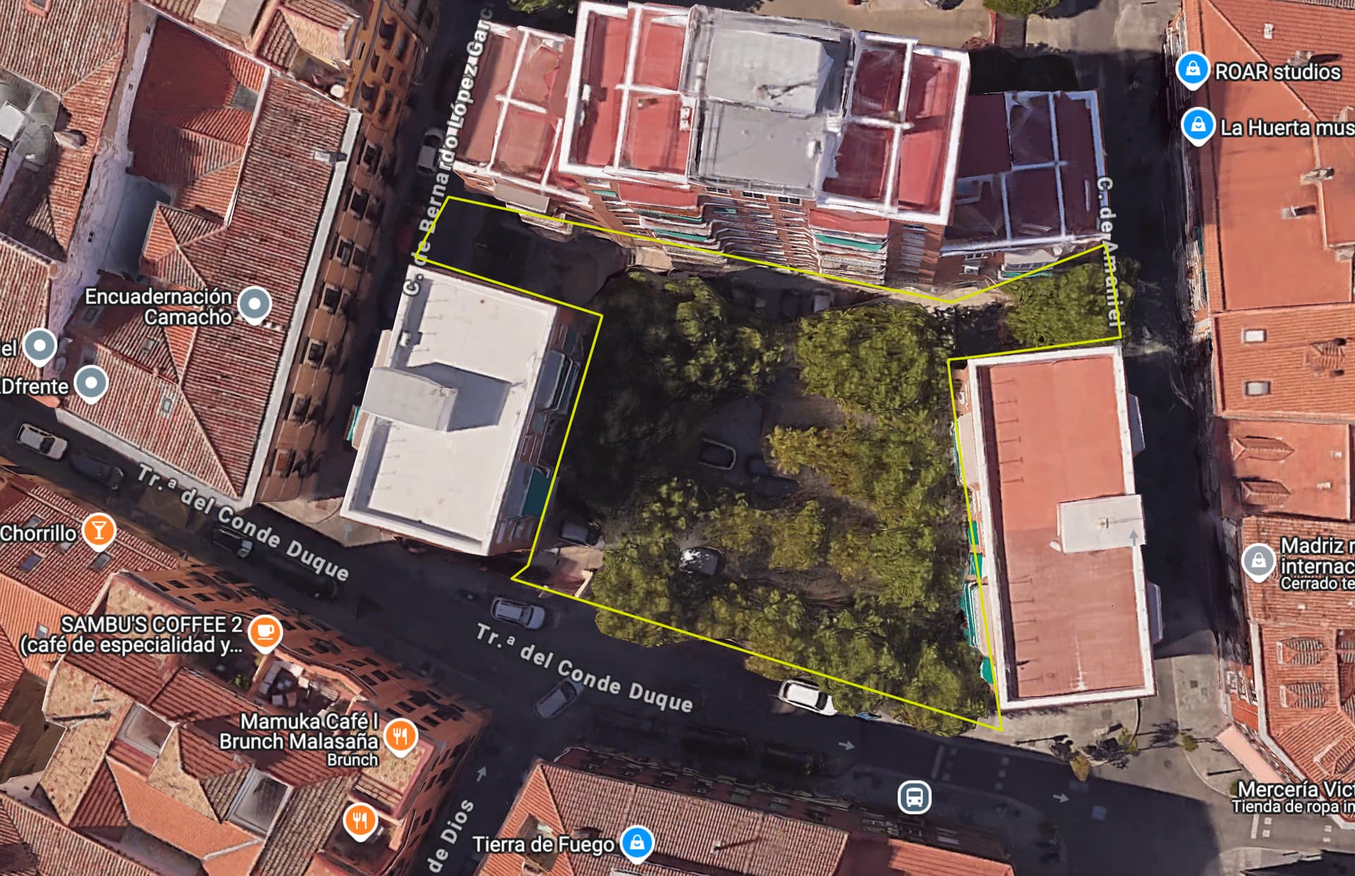 Creo que no tiene sentido derribar ningún edificio de los propuestos en el plan, ya que acogen funciones que habría que ubicar en edificios cercanos, pero sí que se debería convertir el actual parking en un jardín o pequeño parque, más teniendo en cuenta que el espacio tiene un árbol singular, una encina centenaria que ya existía en tiempos de Goya y otros árboles protegidos, que es una zona muy bien comunicada por transporte público y que desde el Gobierno se anima a potenciar el transporte público en detrimento del privado.