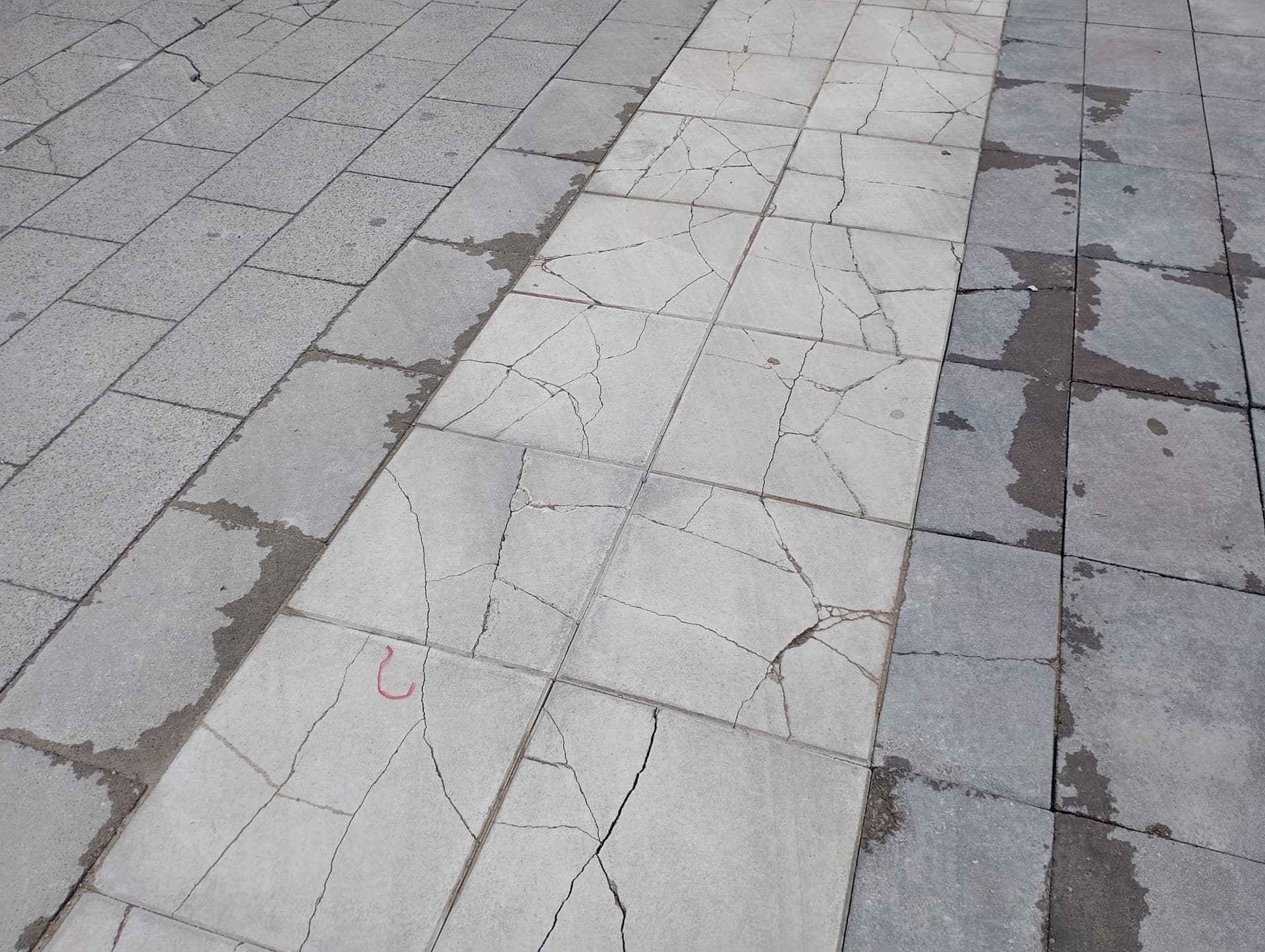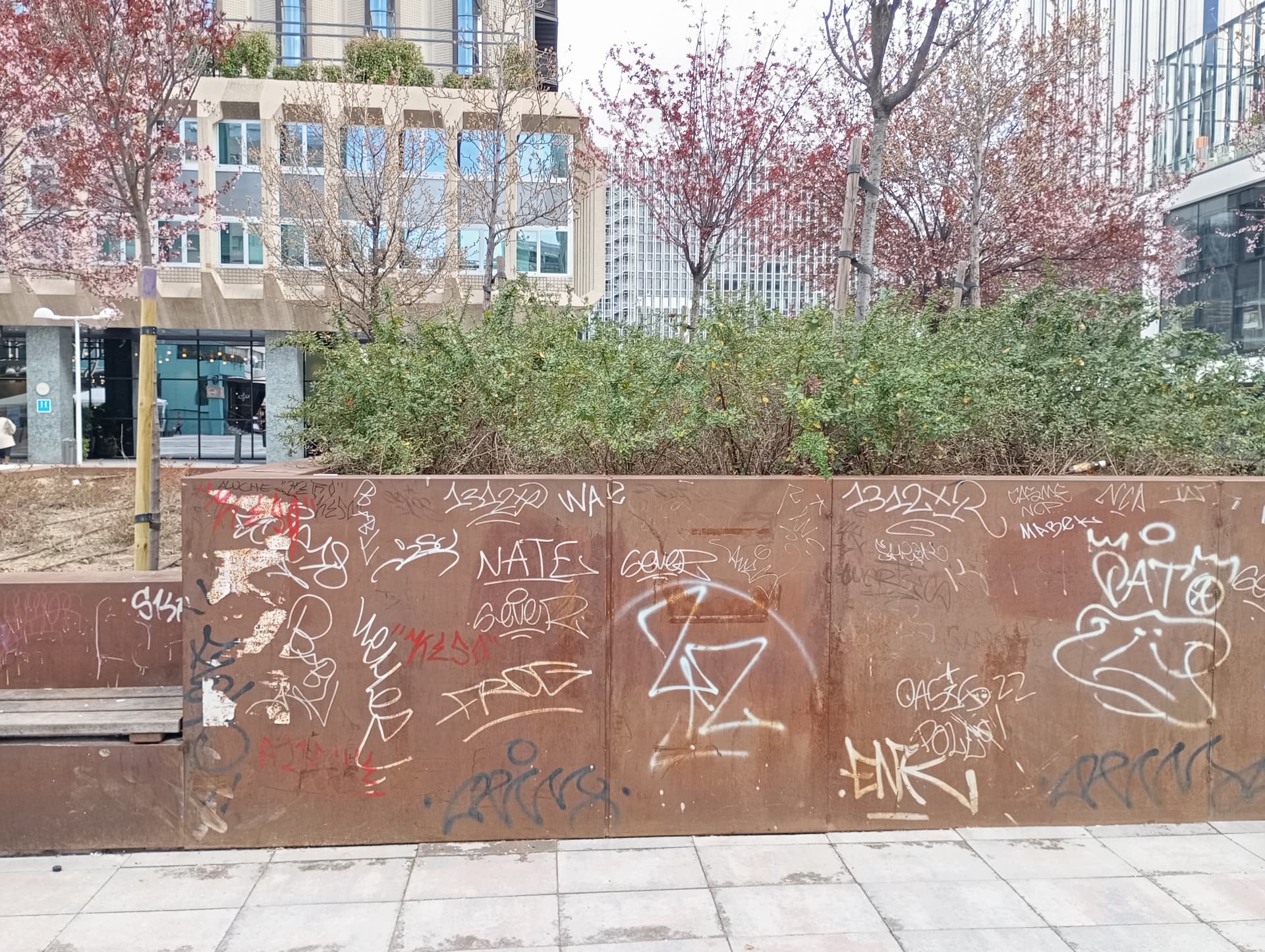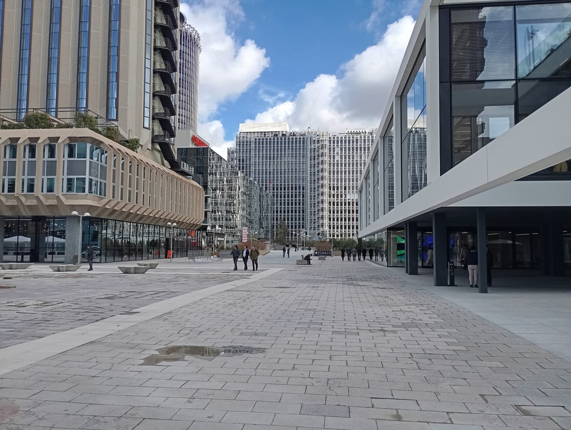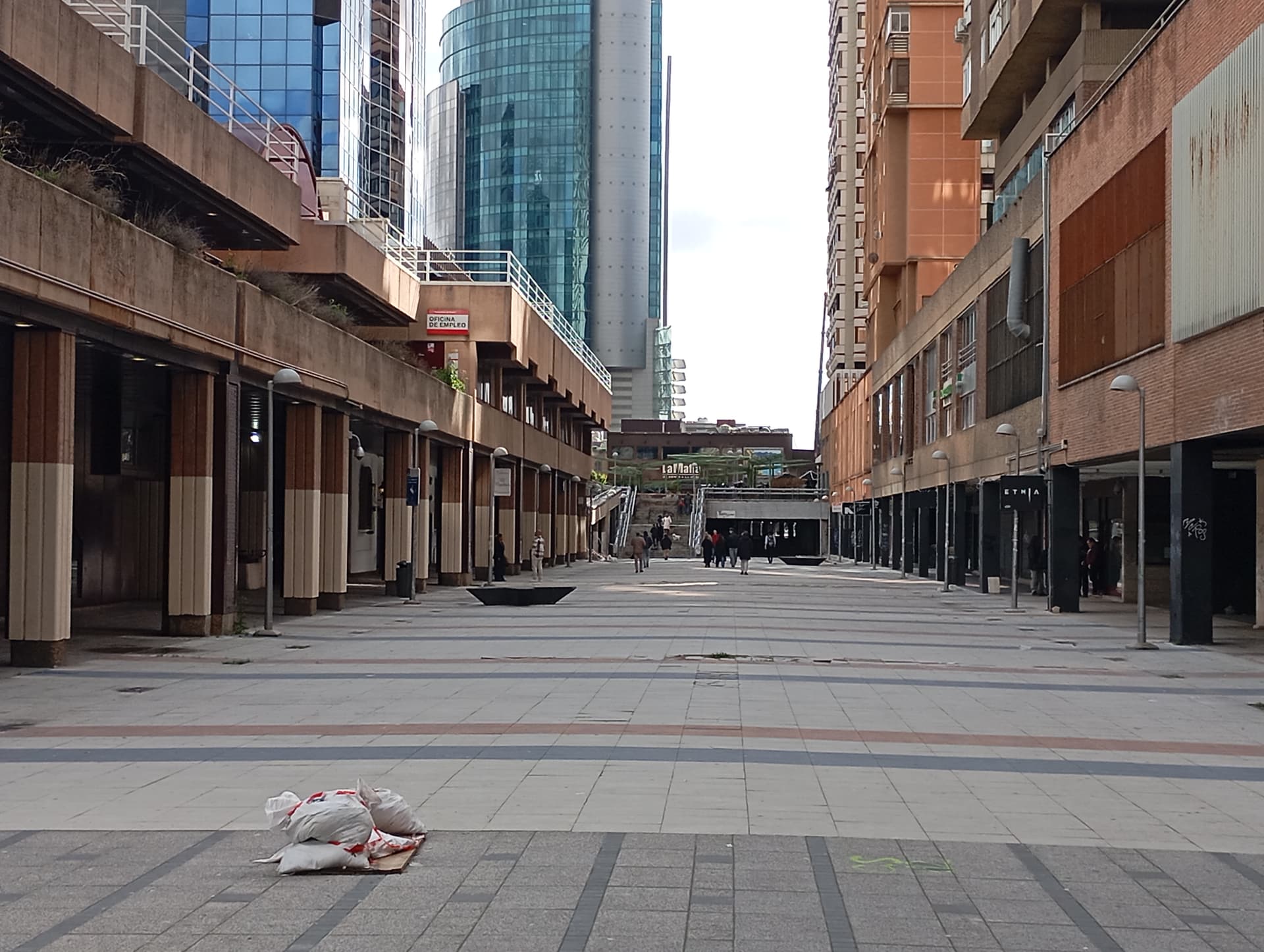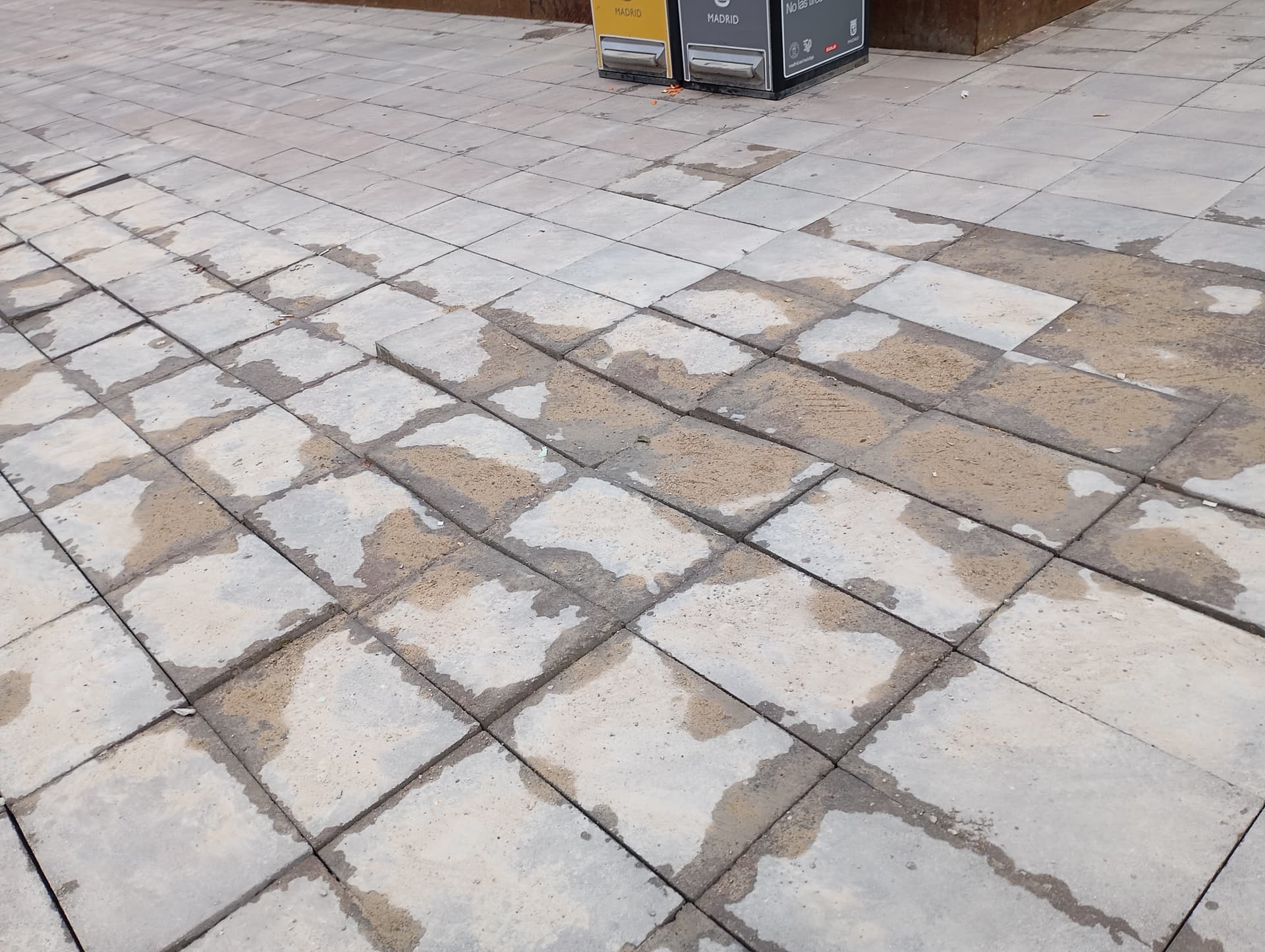 La zona de azca junto al Paseo de la Castellana , en dirección a la Torre Picasso tiene todo el pavimento reventado, todas las baldosas rotas. Da un aspecto muy dejado.