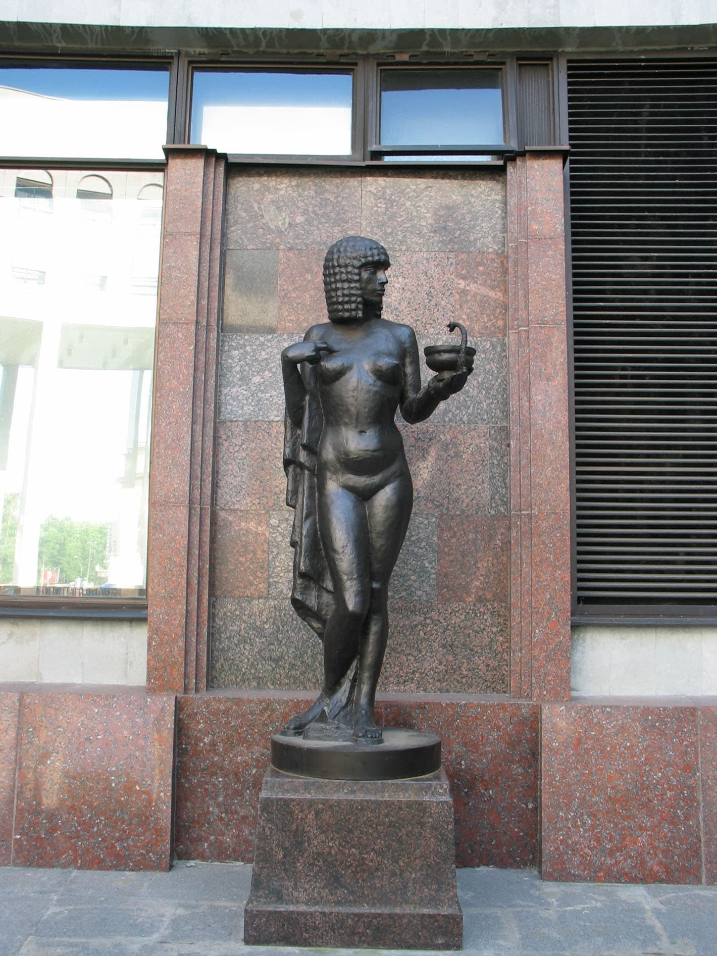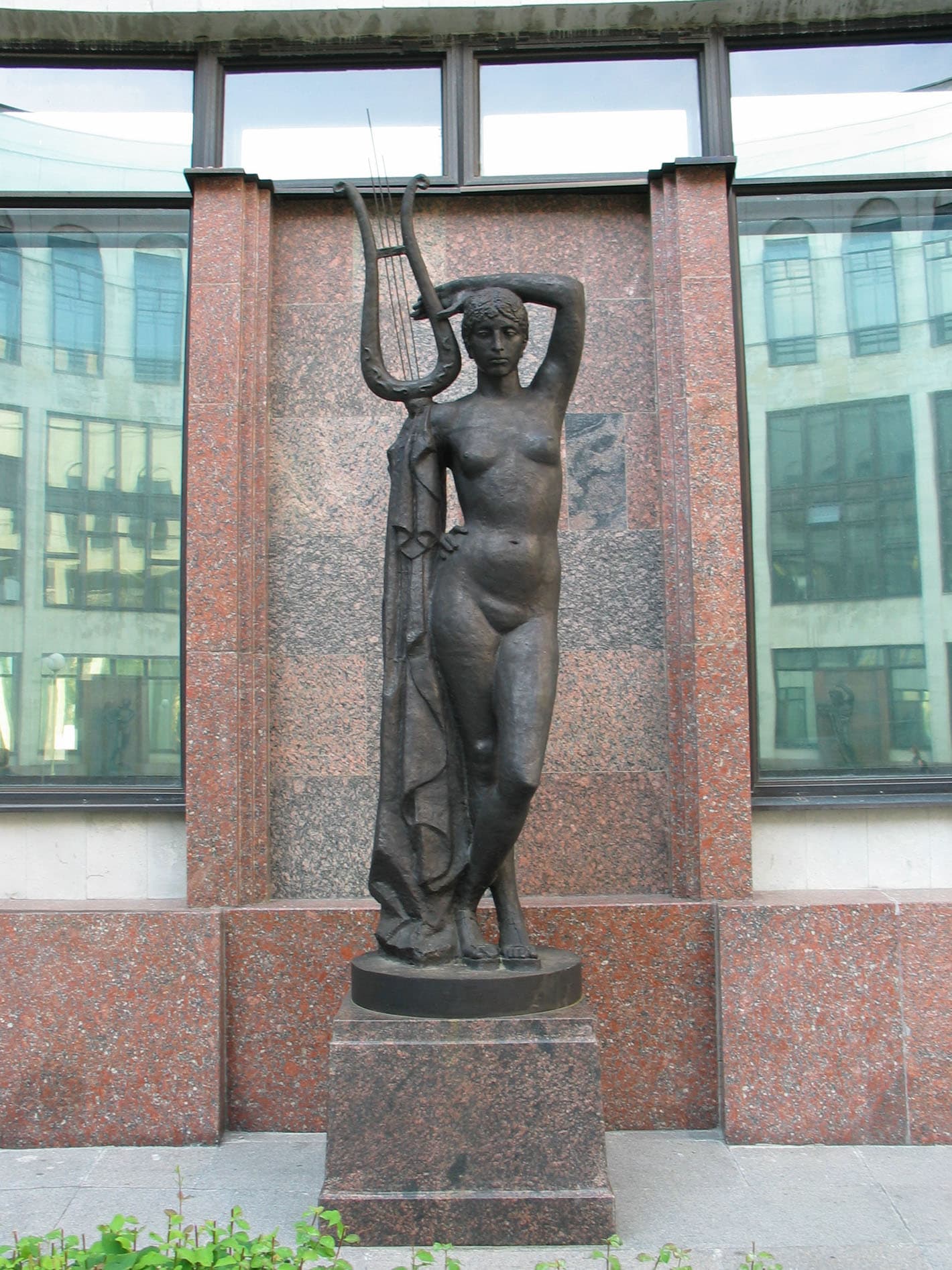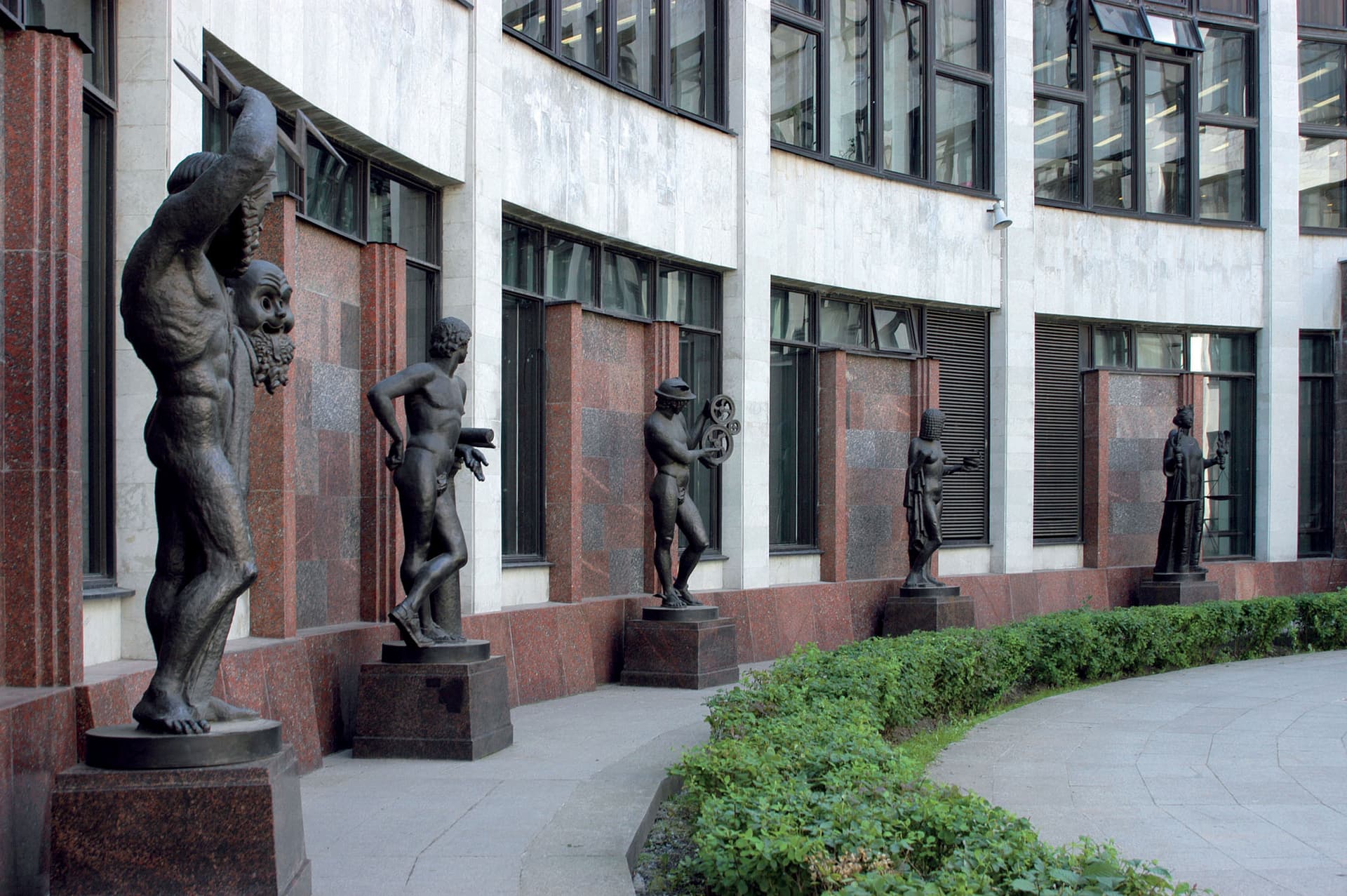 El proyecto preveía también la instalación de esculturas alegóricas “Teatro”, “Arquitectura”, “Mecánica”, “Medicina”, “Religión”, “Aeronáutica”, “Vitivinicultura”, “Filosofía”, “Música” y “Justicia” en la rotonda frente a la entrada principal. Las estatuas fueron realizadas por A. A. Murzin en cobre por el método galvanoplástico según los modelos del escultor B. A. Svinin.