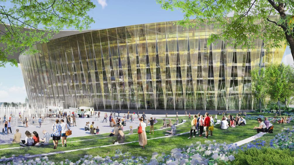 Tal vez estaría mejor hacer un distrito de negocios bonito de torres más pequeñas alrededor de este hito central.