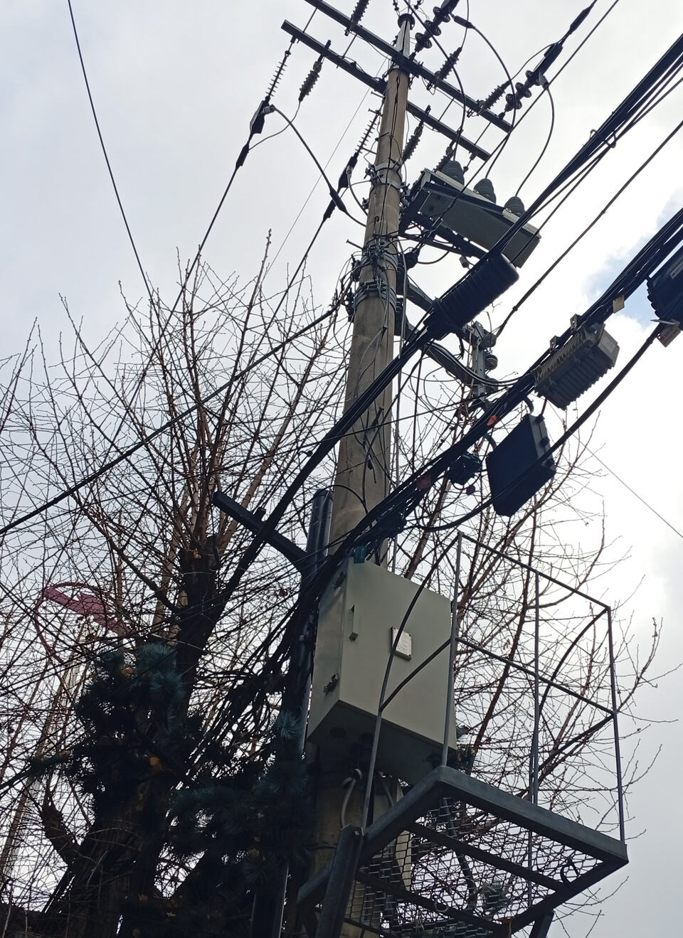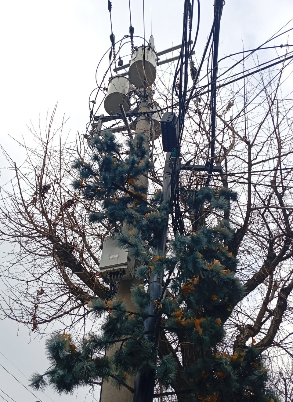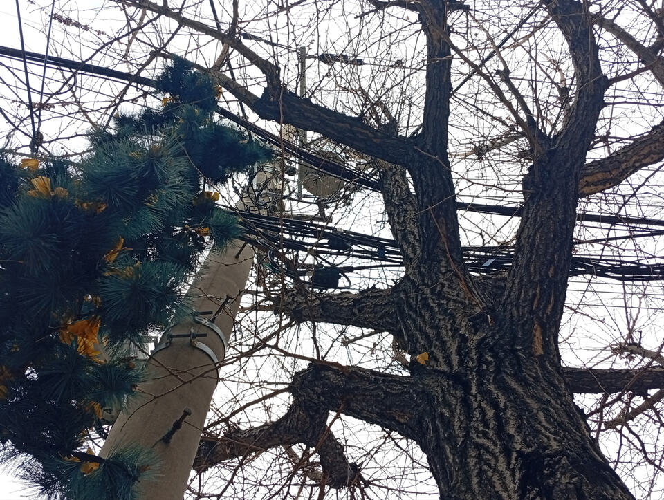 Una solución muy socorrida para el problema del cableado urbano es hacerlo pasar por en medio de las copas de los árboles. Si todavía sientes la necesidad de lograr un mayor disimulo, siempre puedes añadir algún que otro poste con forma de conífera para. Una de las ventajas de este sistema es la posibilidad de acallar cualquier voz crítica con la poda de los árboles en cuestión.