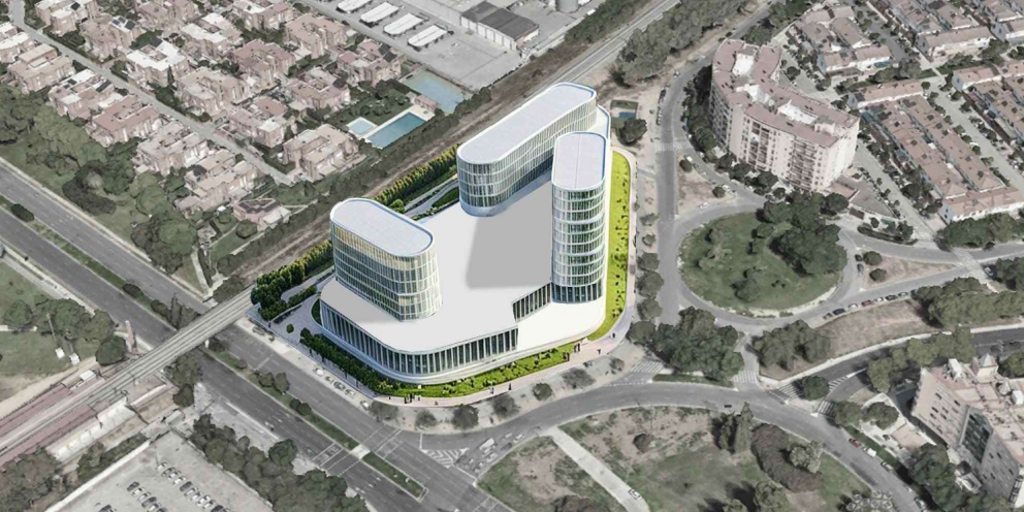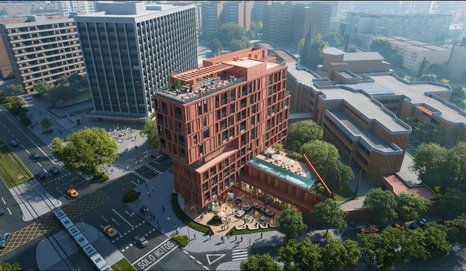 El render la verdad es que sí, veremos cómo queda terminado. Lo que sí me parece es metido un poco con calzador, lo que queda a la derecha es un colegio, que va a tener una piscina y terrazas “a tiro de piedra” de sus clases…
