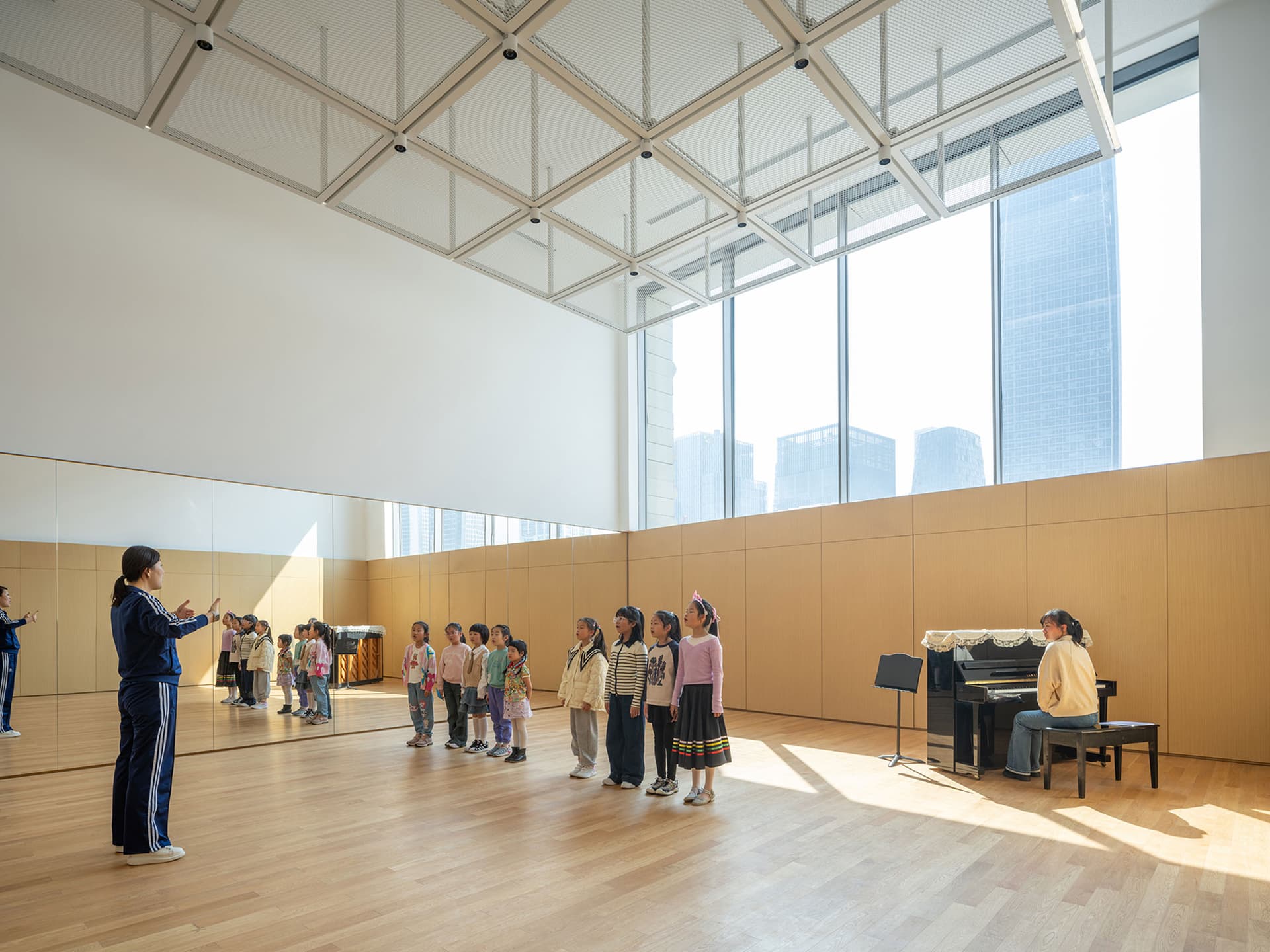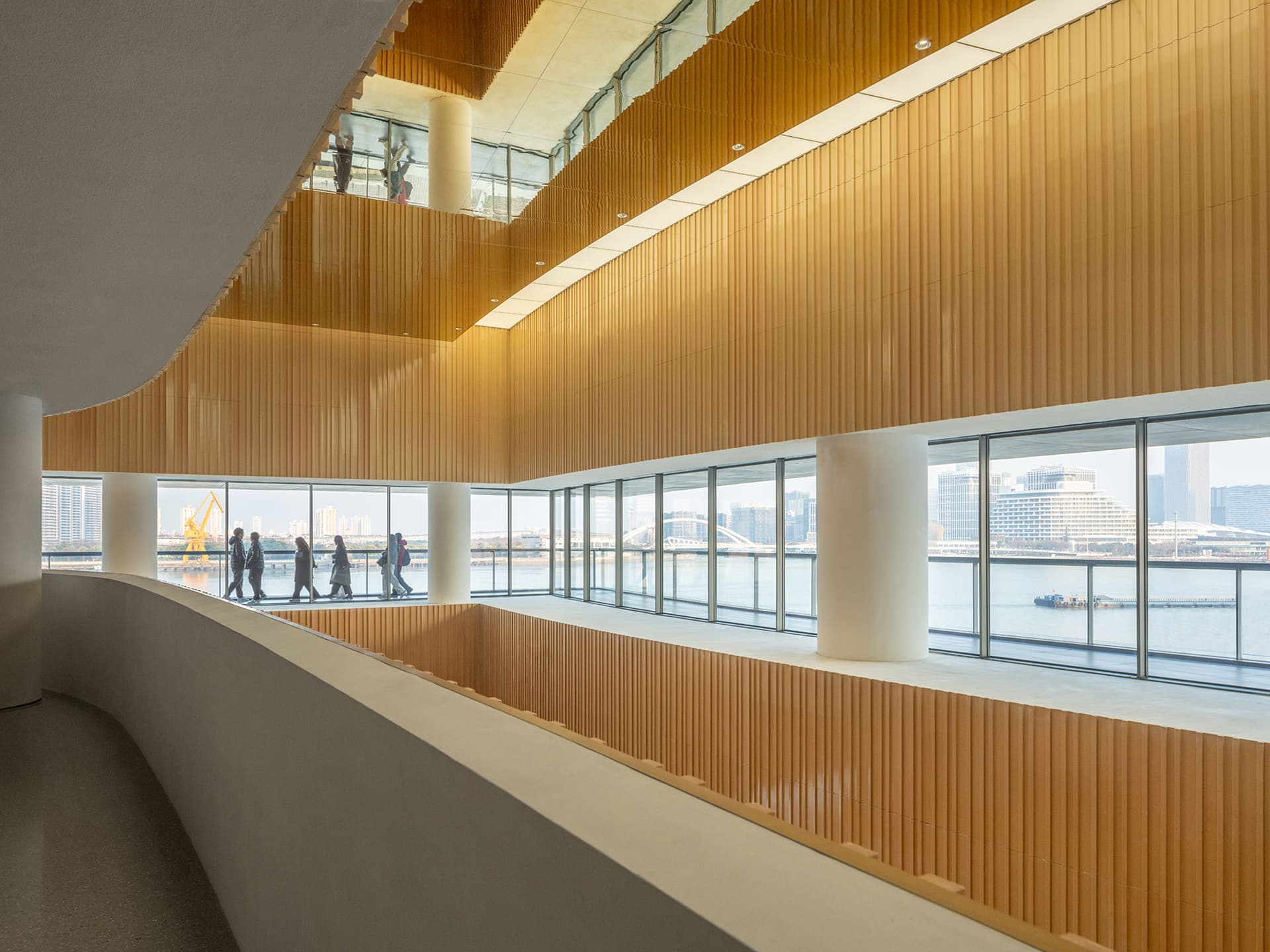 Este gran edificio busca consolidarse como uno de los centros artísticos más importantes del distrito. Dialogando también con el recientemente inaugurado West Bund Dome —una estructura histórica renovada y reutilizada adyacente al teatro—, el nuevo edificio establece una relación de contrastes entre el teatro monolítico y abstracto y la gran cúpula translúcida.