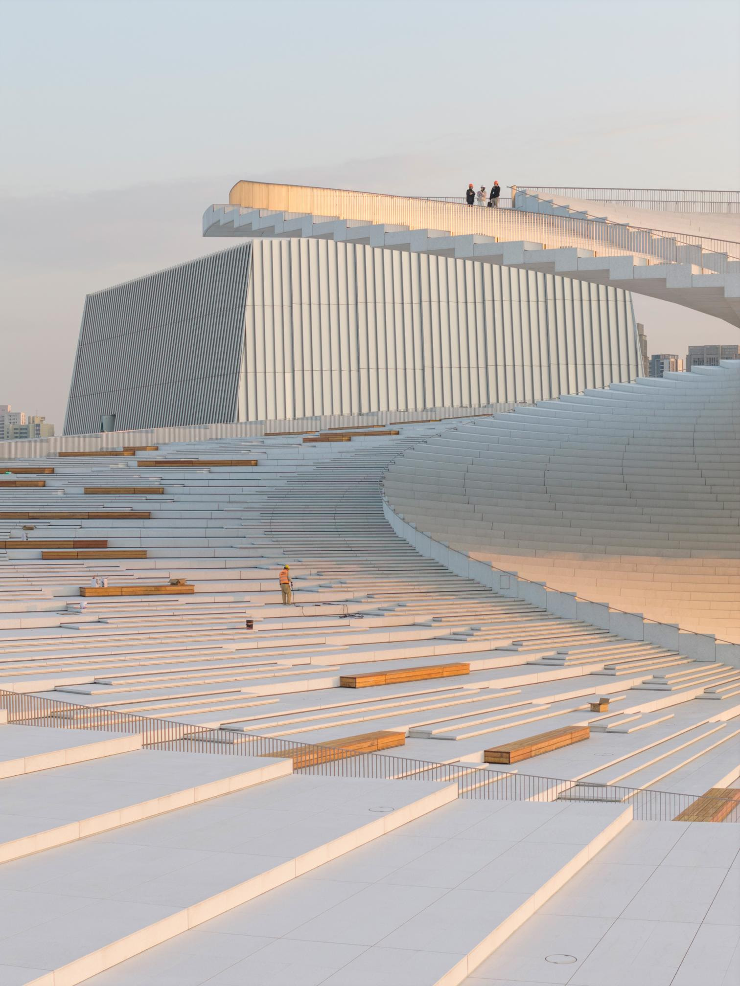 Desarrollado con ECADI, Theatre Projects y Nagata Acoustics, el proyecto recoge la experiencia acumulada por el estudio noruego en obras emblemáticas. Si en la Biblioteca de Alejandría exploraron la continuidad entre cubierta y fachada, y en la Ópera de Oslo transformaron la cubierta en plaza pública transitable, en Shanghái ambas ideas convergen y evolucionan.