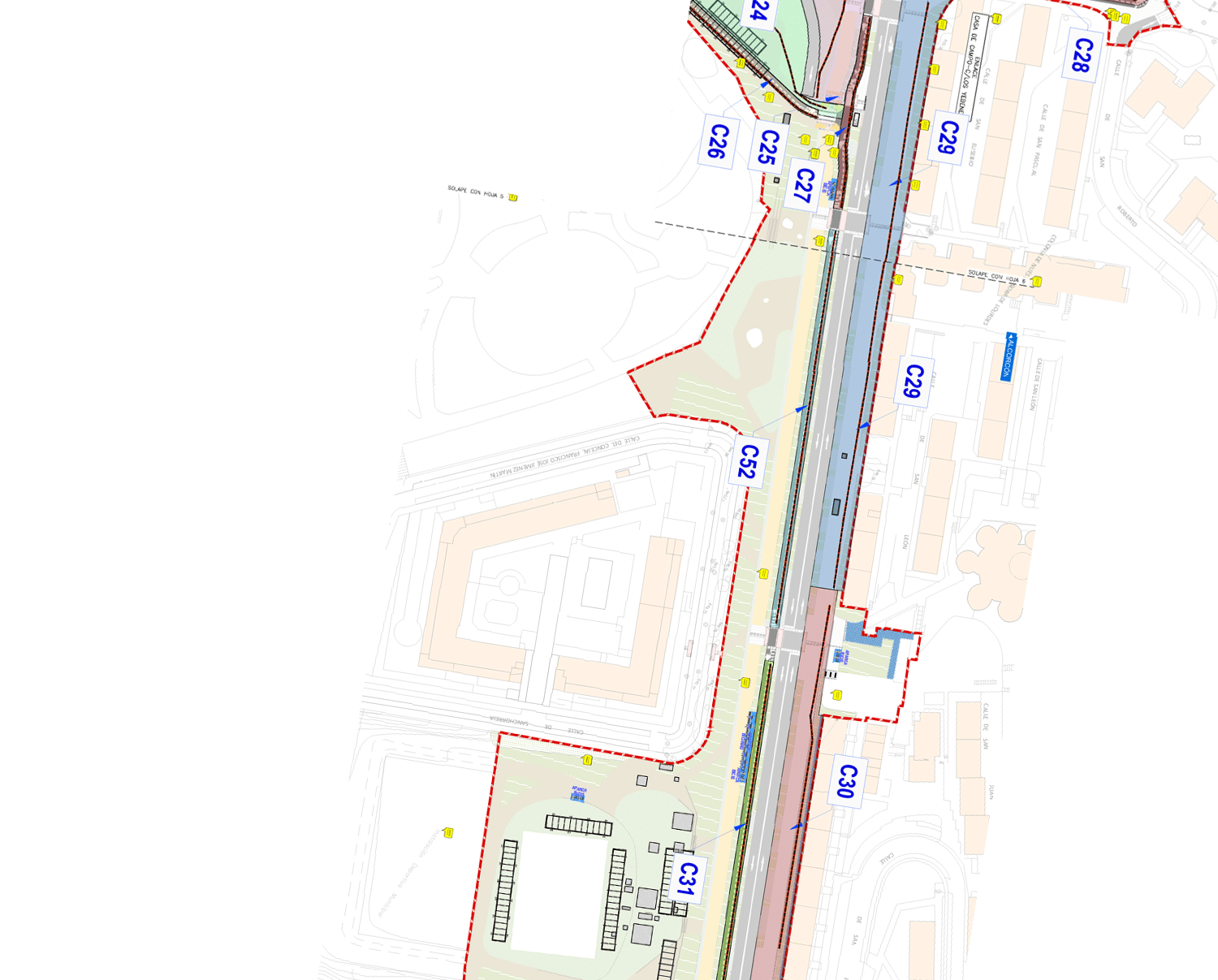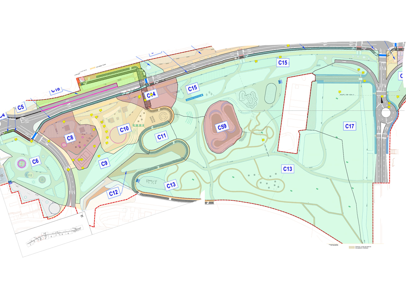 Lo que no he visto en los planos de la actualización del lote 3 es la zona de juegos de agua que estaba prevista enfrente del colegio Divino Maestro. La verdad es que era una zona buena para plantear una fuente seca con un quiosco cerca.