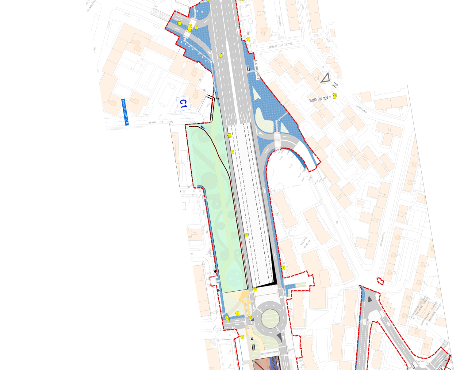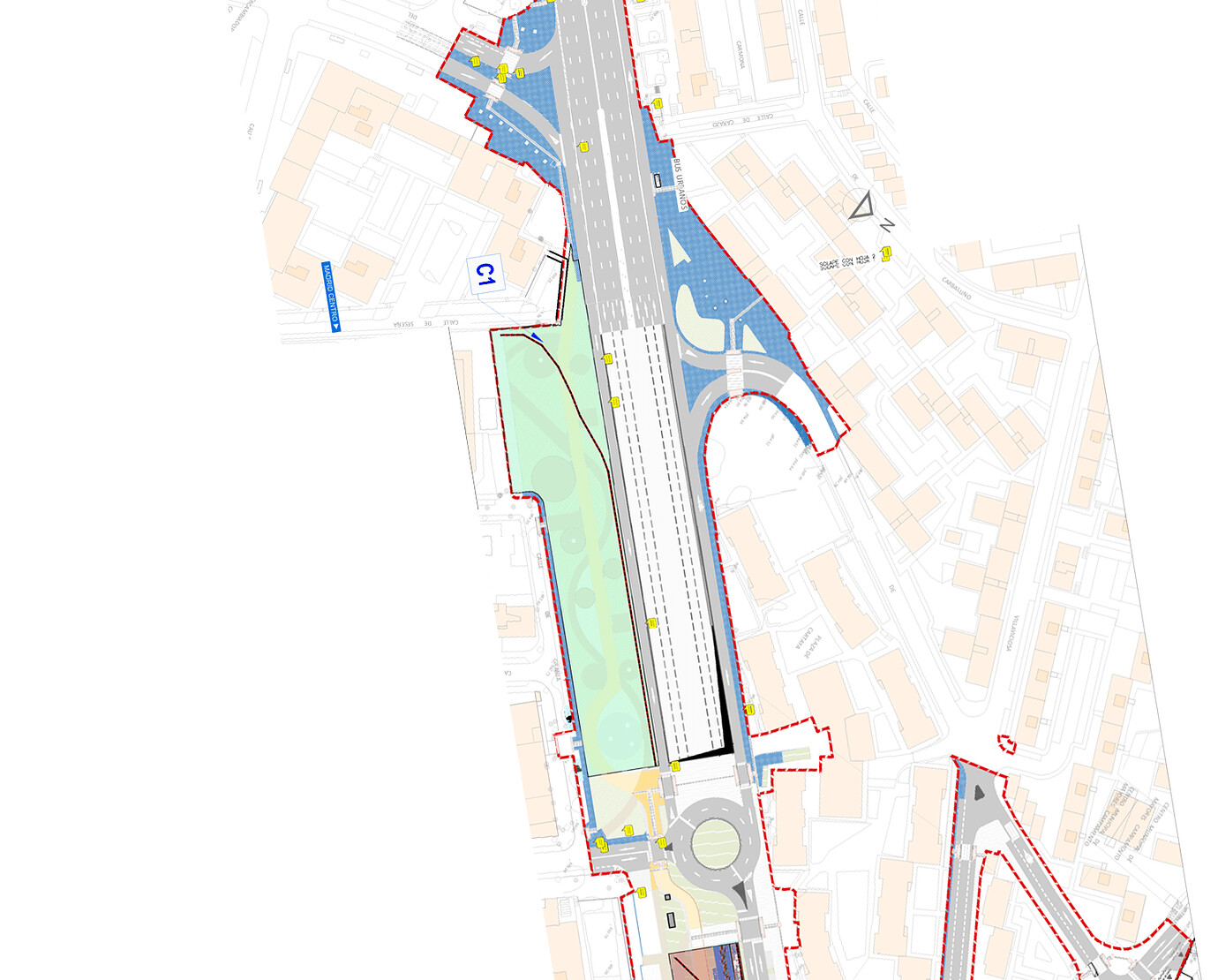 El diseño de este cruce me parece que va a dar muchos problemas. Podrían haberlo planteado como una continuación del Paseo de Extremadura antes que de la Av de Portugal. Al final el Paseo es la vía principal y por la que circulan las cinco lineas de autobuses urbanos.