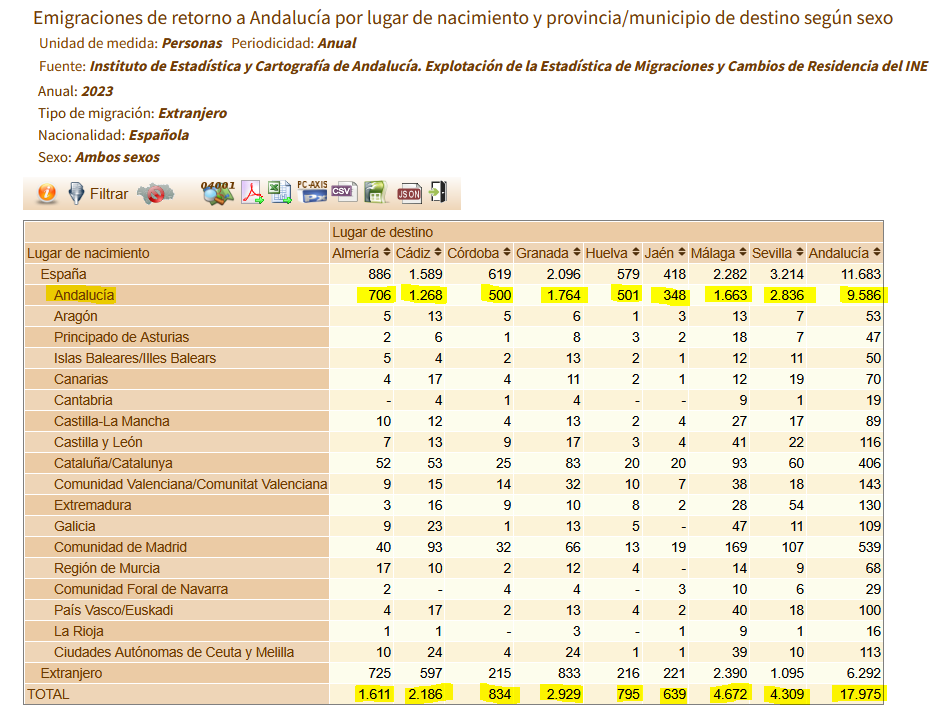 De hecho de los 17.795 andaluces retornados de los que habla el artículo, en realidad nacidos en Andalucía “sólo” hay 9.586. El resto son españoles o nacidos en el extranjero.