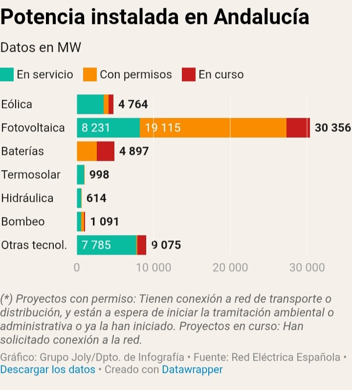 Andalucía cuenta con 920 proyectos fotovoltaicos y 64 eólicos en tramitación, según una respuesta parlamentaria del consejero de Industria, Energía y Minas, Jorge Paradela recogida en el BOPA. La comunidad lidera el crecimiento anual en renovables del país. La Junta ha revisado al alza sus objetivos para 2030. La comunidad ha instalado 3.607 MW renovables en los últimos doce meses hasta los 16.111 MW a cierre de junio. La región batió su récord incorporando un 29% más de capacidad verde y eleva al 69% su potencia de generación eléctrica limpia, expuso en el Parlamento el consejero de Industria, Energía y Minas. La inversión aparejada al incremento de las energías limpias es de 3.625 millones, con 10.800 empleos.
