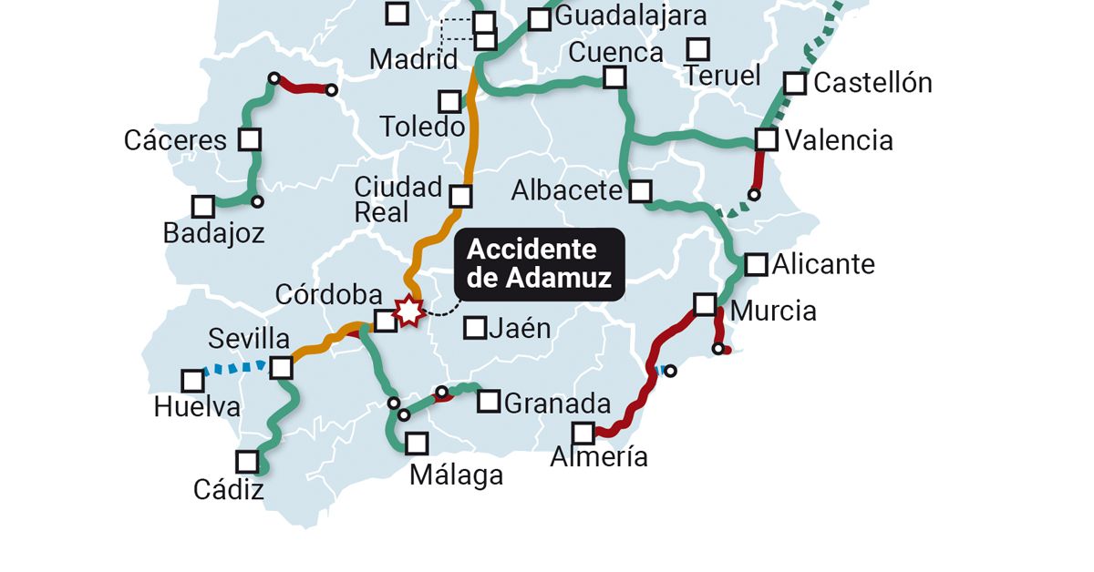 Para que veáis la inutilidad del Ministerio de Transportes, han planteado un ramal por Montoro que desembocaría aprox. en la zona del accidente del pasado domingo, es decir, saturar más aún un tramo que ya se ha demostrado que no es seguro… con ese dinero se podría mejorar la línea de Linares y ser una evacuación para buena parte de Andalucía.