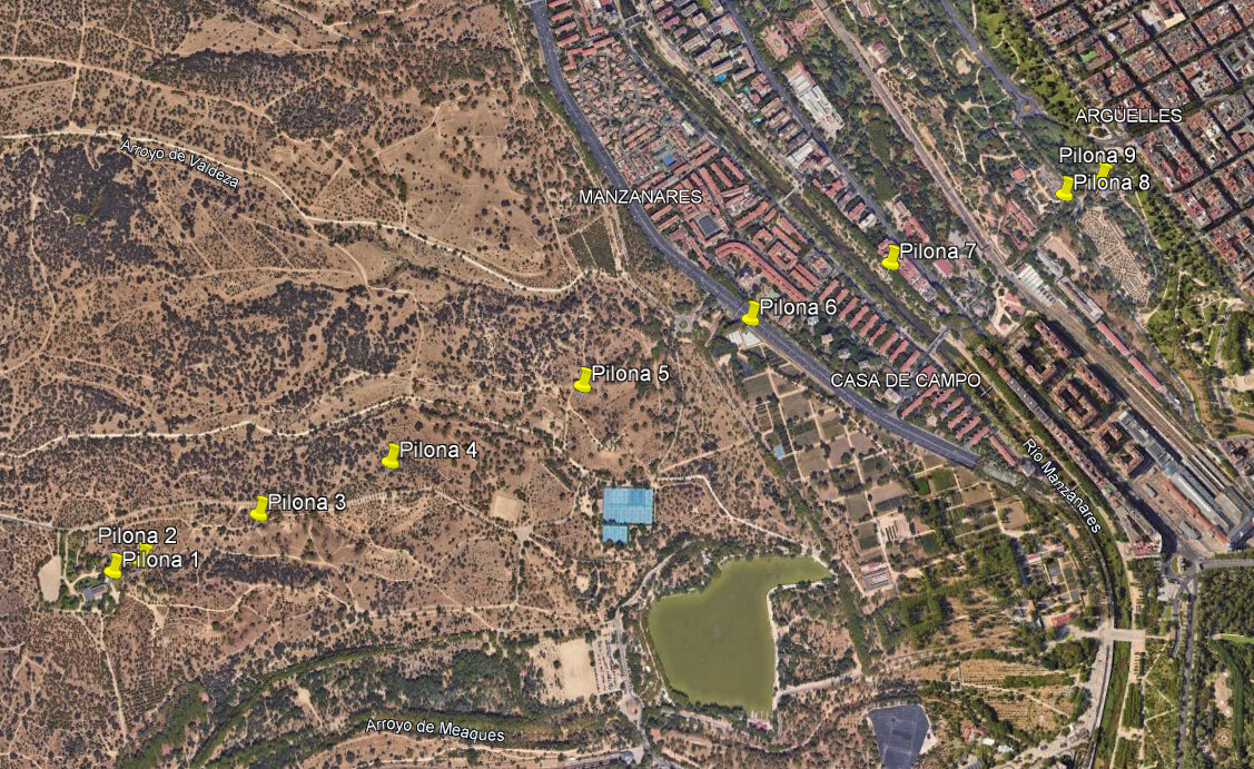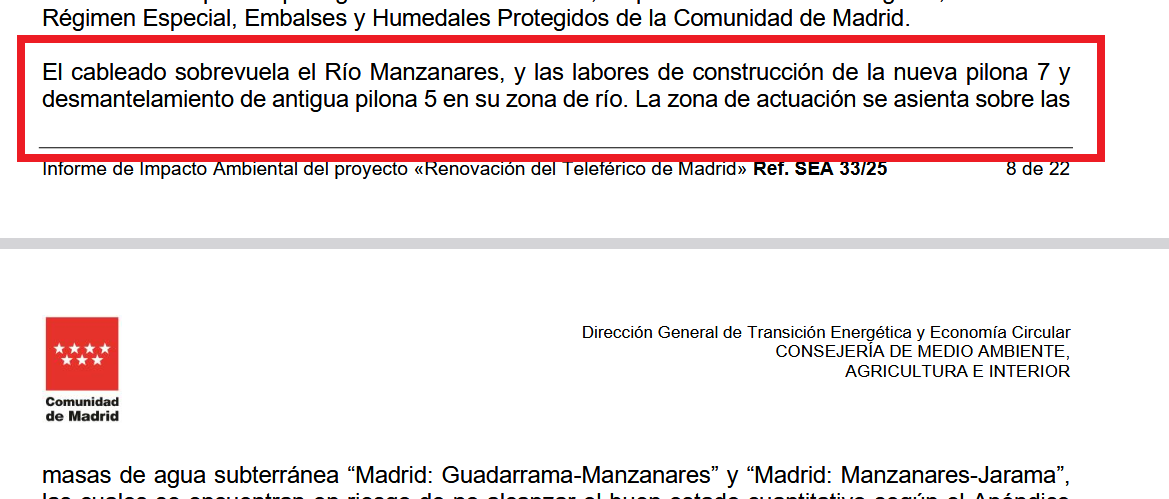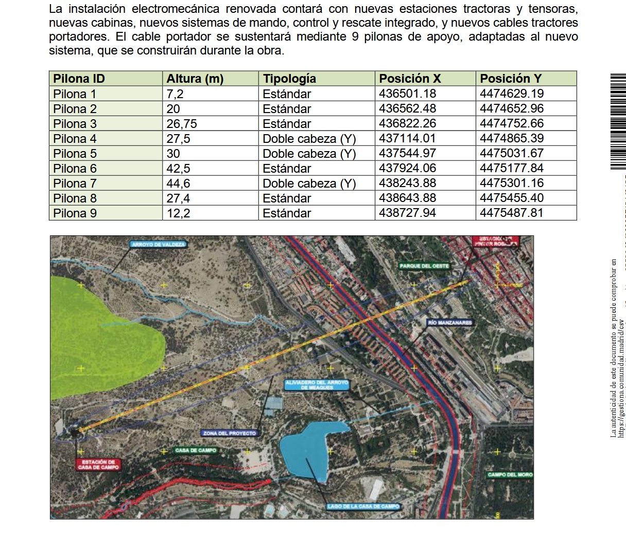 Ha salido hoy en el BOCM la publicidad del Informe de Impacto Ambiental del teleférico. Se puede ver la posición de las nuevas pilonas y parece que la 6 (la más próxima a M-30) se mueve un poco alejándose de la traza de la vía. Quien sabe si piensan en una posible futura ejecución de muro pantalla que no sería compatible con la pilona actual.