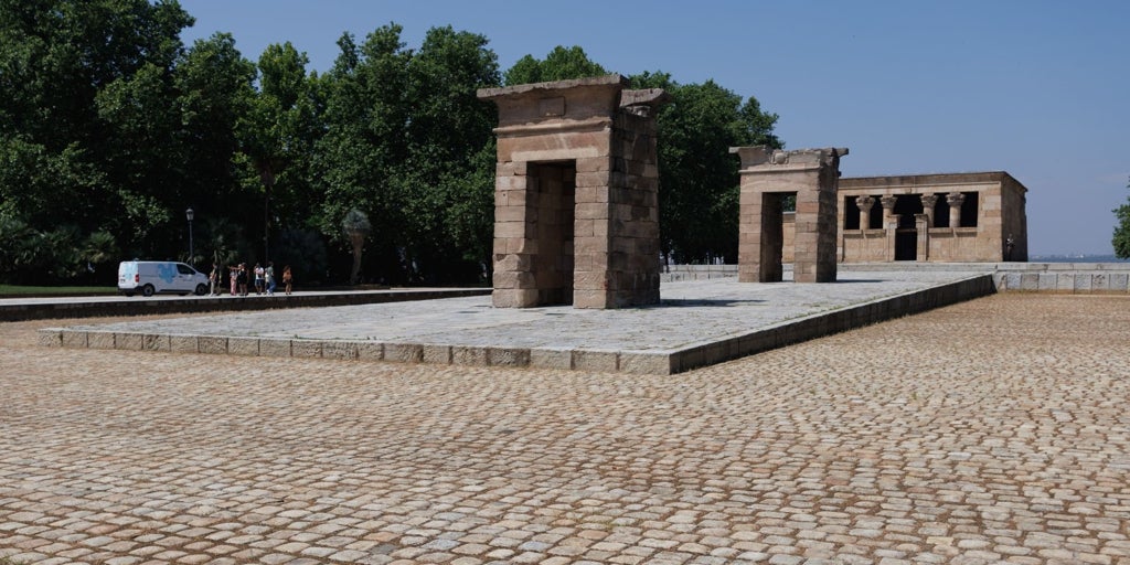 Como apunte, (por lo que dijeron en la junta de Moncloa-Aravaca) si no hay retrasos, a finales de otoño, se supone que comienzan a rehabilitar el estanque alrededor del templo.