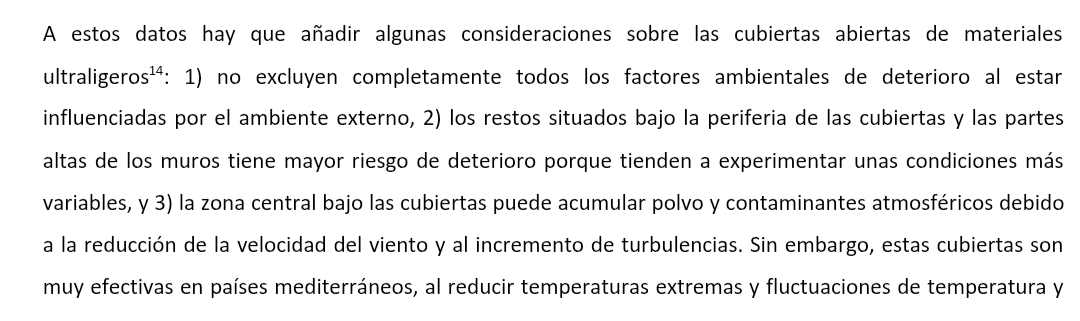 Hay factores que la cubierta no elimina y que como bien indica en el documento que has traído necesitaría de un mantenimiento constante que, si tenemos en cuenta no solo como se ha mantenido hasta la fecha sino el mantenimiento del Ayuntamiento en general, podemos apostar que no se va a dar. Sí, prevenimos el deterioro severo pero aún así no es lo idóneo.