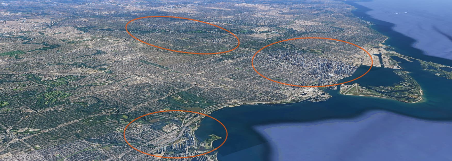 Yonge Street in Toronto is pretty fascinating. You get clusters of density along a subway line stretching from downtown to the northern tip of the city.