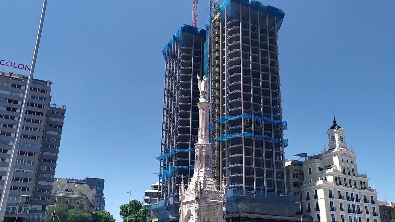 Las Torres Colón, con 117 metros de altura, se encuentran en una profunda reforma que ha eliminado su famoso “enchufe”. El estudio de arquitectura Luis Vidal + Arquitectos se encuentra detrás de la reforma.
