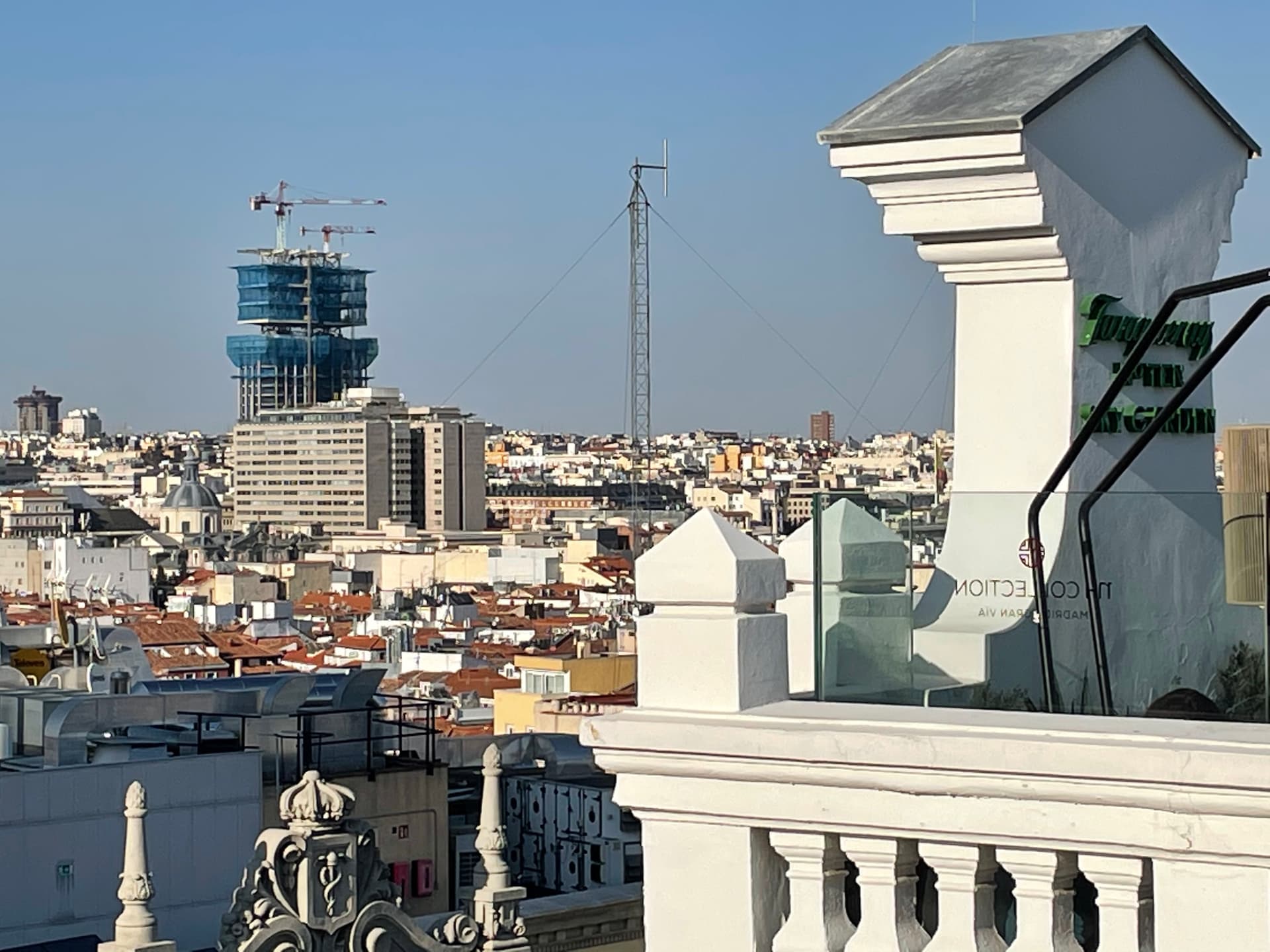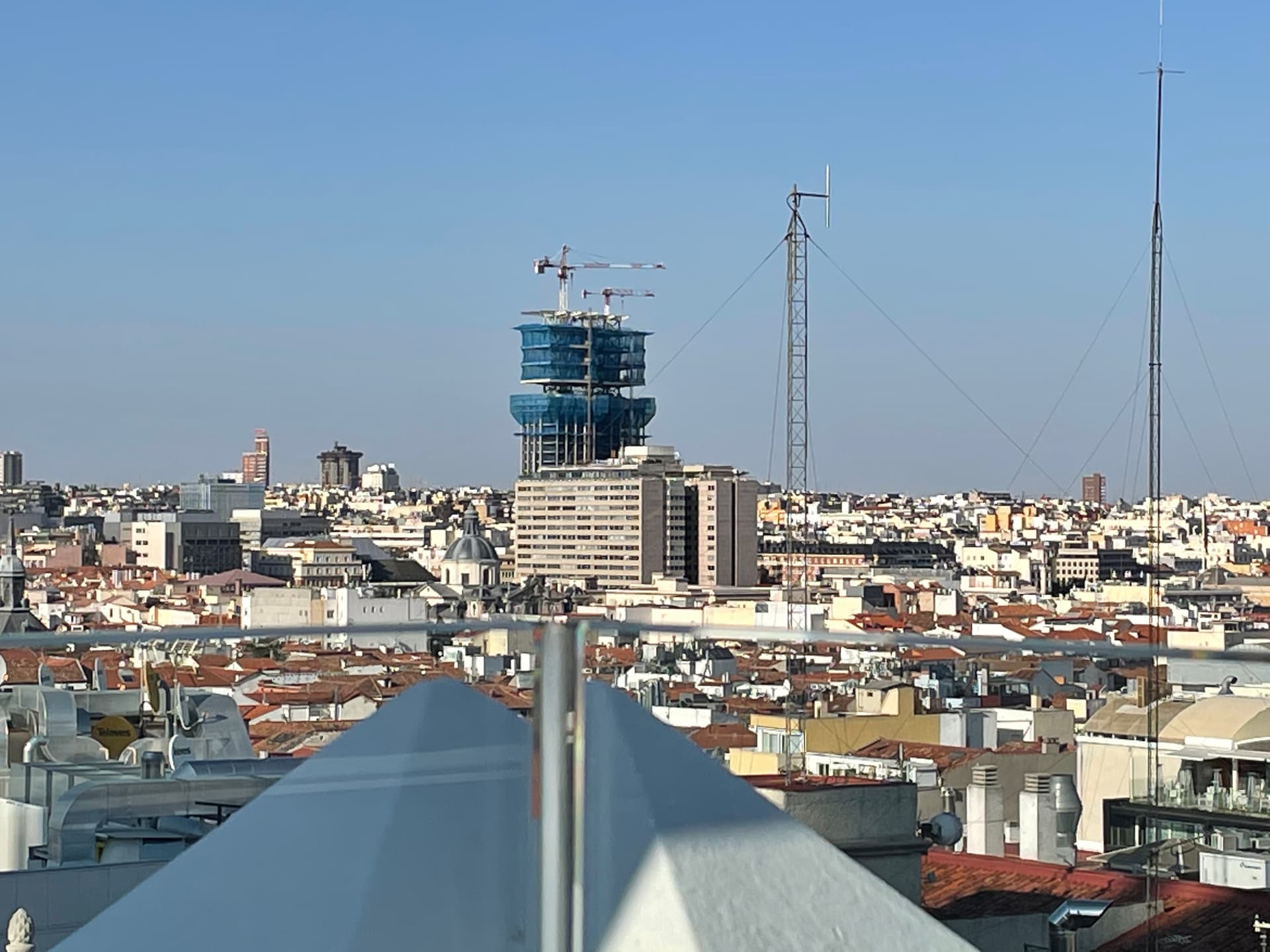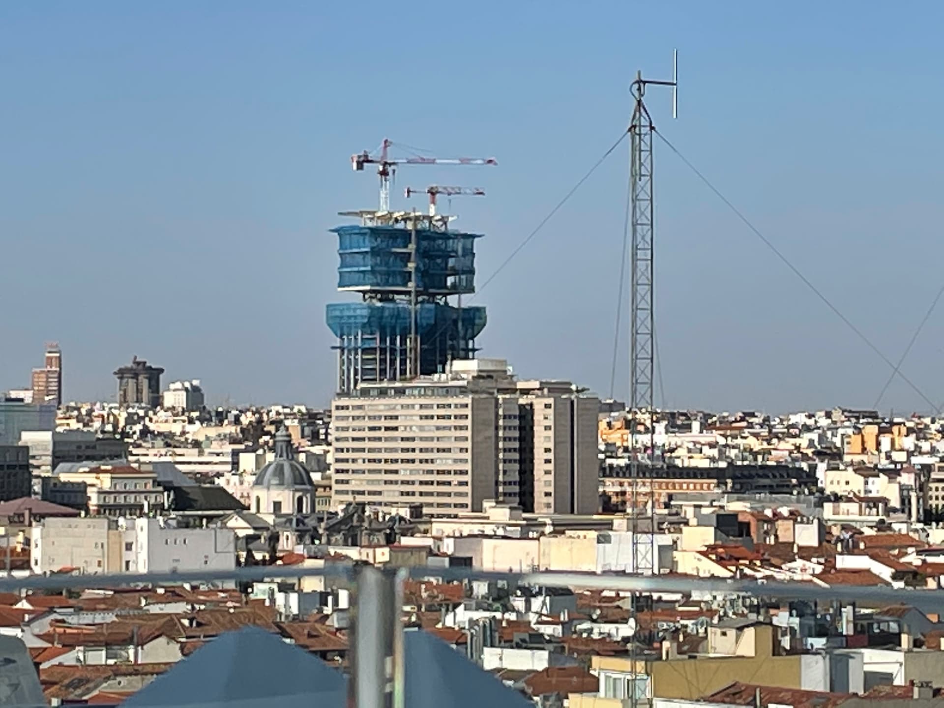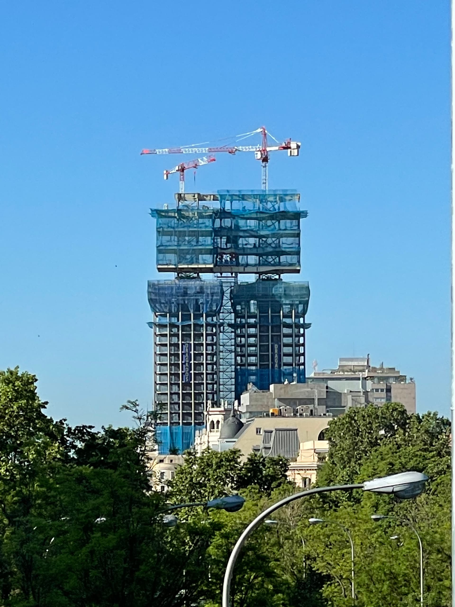 Espero que rematen bien esas torres. Van a dejar de ser un edificio alto, algo disimulado por estar en una vaguada y frente a una plaza amplia, a convertirse en un no tan pequeño rascacielos. ¡Se ve desde todas partes y pasa a formar parte de la línea del cielo de la Villa!