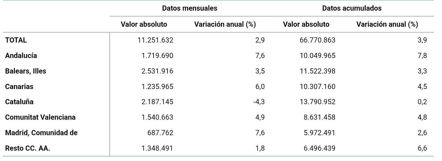 Durante los ocho primeros meses del año, el número de turistas ha sido de 5.972.491 (+2,56%)