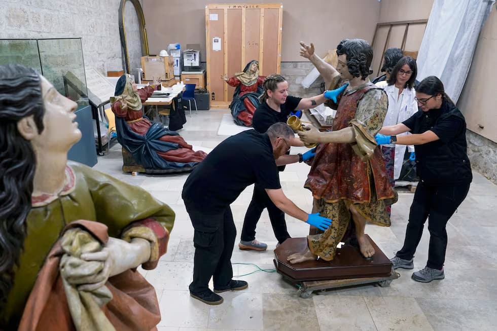 Varias tallas del imaginero del Barroco Gregorio Fernández, máximo exponente de la Escuela Castellana, pasan por el ‘quirófano’ tras el reciente derrumbe de la cúpula de la iglesia de la Vera Cruz.