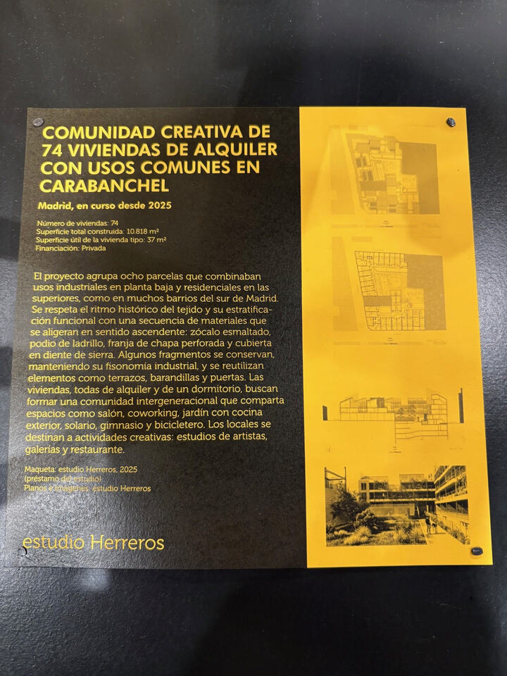 En la exposición de la Casa de la Arquitectura vi este proyecto de Estudio Herreros en Carabanchel. He buscado en su página, pero no aparece nada. Es de 2025 y se supone que está en curso, pero me extraña tanto misterio. No sé si tiene algo que ver con VETA o es otro proyecto. Si alguien tiene más información, que lo diga o calle para siempre ![]()