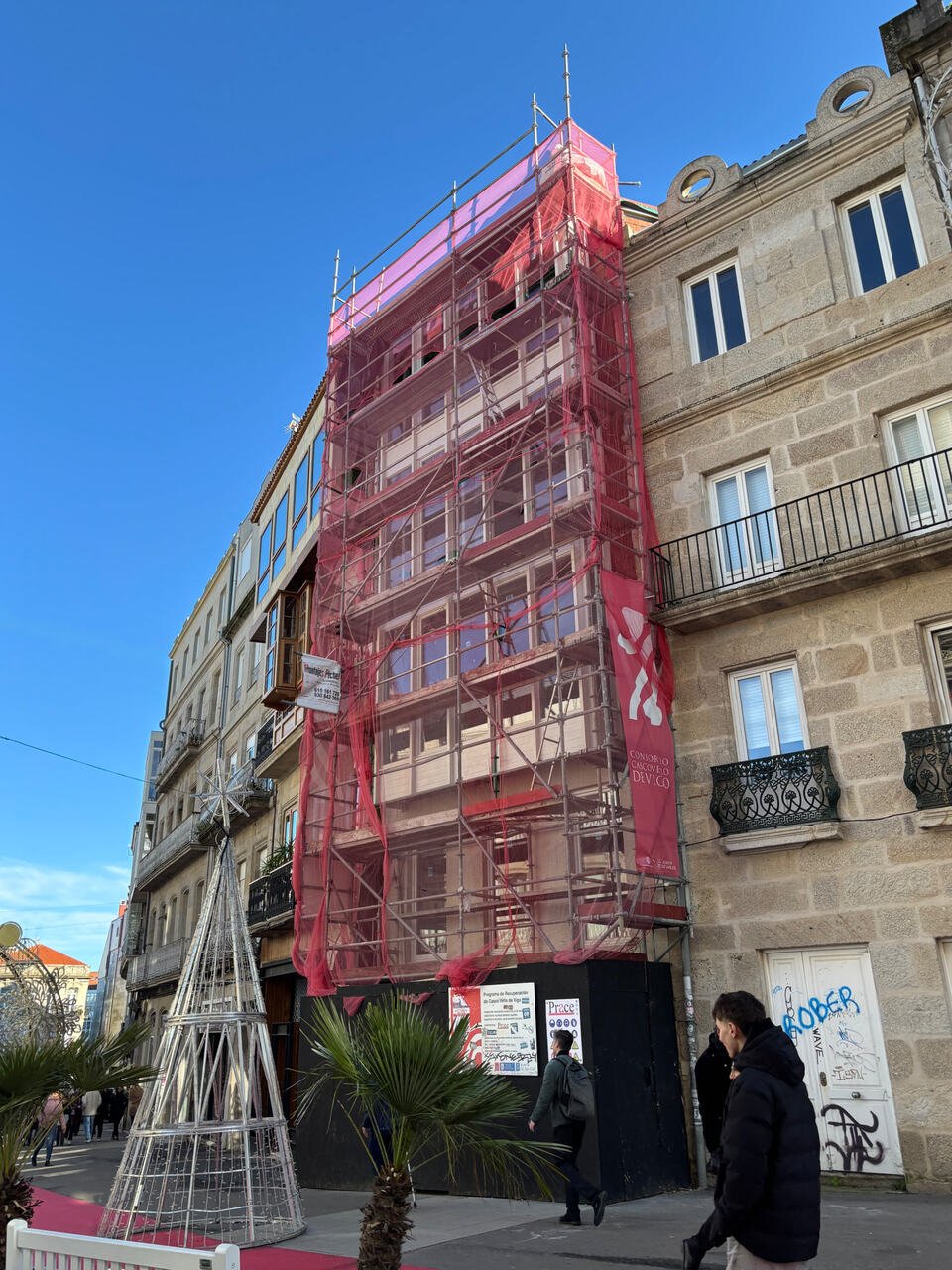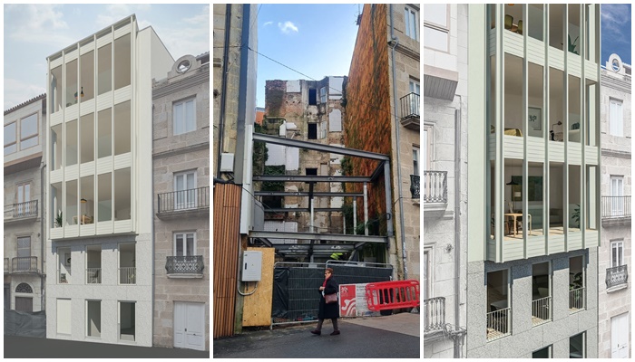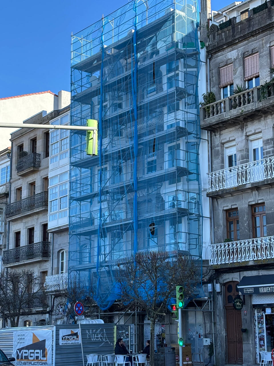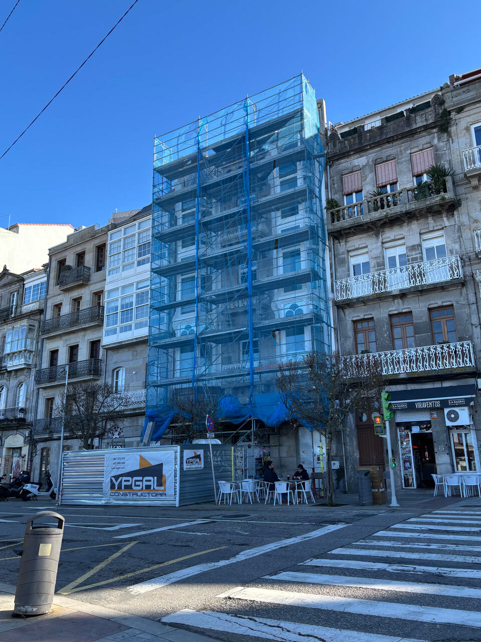 Esta zona está con mucho movimiento, lo cual no es extraño teniendo en cuenta que es céntrica, bonita, tranquila a nivel tráfico y con buenos edificios de piedra no sobrecargados de volumetría. El edificio en cuestión está en Rúa Progreso, 23. Aunque le suben las alturas (en Vigo eso es una religión), al menos eso sirve para casi igualar medianeras.